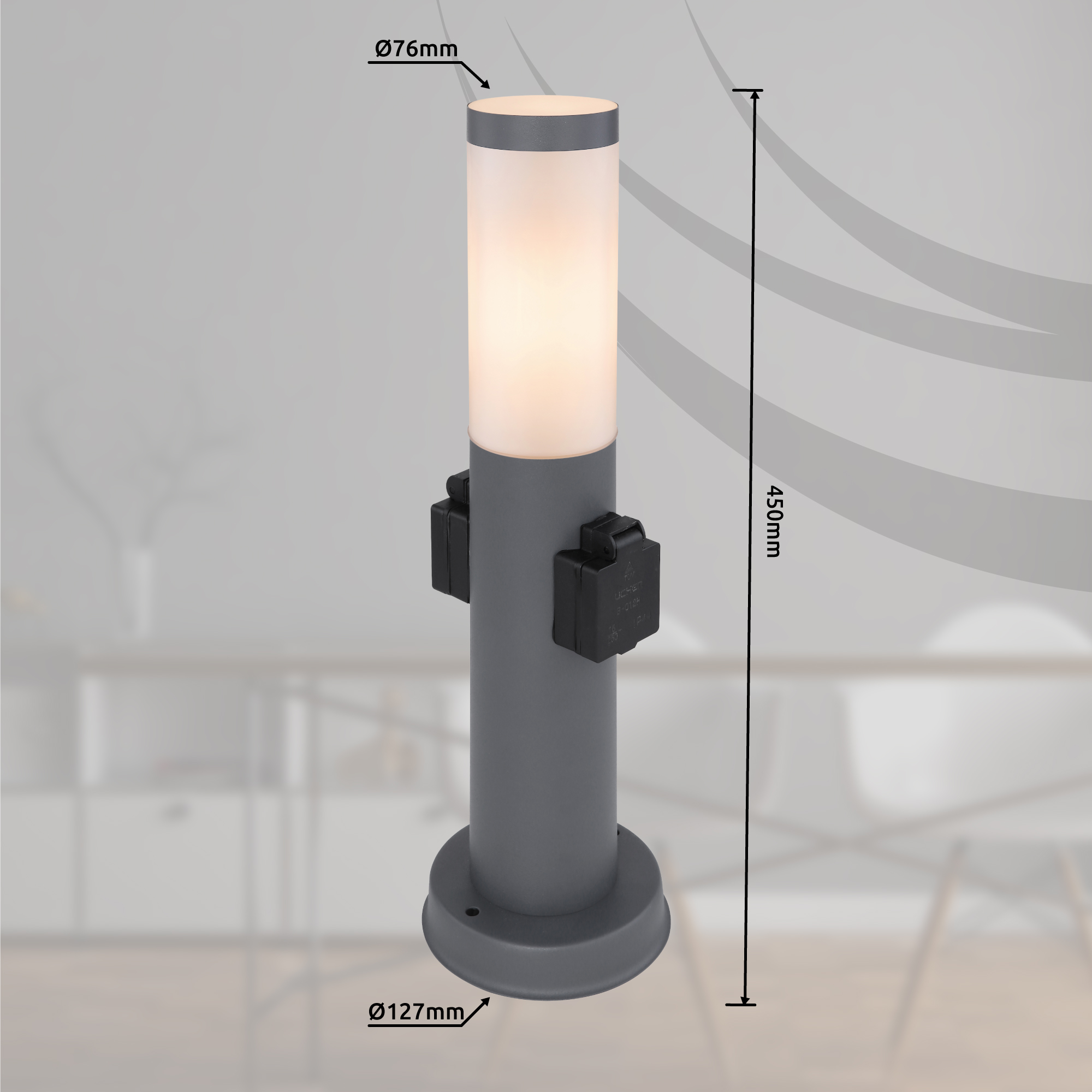 Questa elegante lampada da esterno della serie Boston è caratterizzata da un design elegante e da una grande lavorazione. La formosa lampada in acciaio inossidabile nel colore antracite, è perfettamente adatta all'uso esterno grazie alla sua classe di protezione IP44. Questo modello ha un'altezza totale di 45 cm ed è dotato di una presa E27 (max. 60W). A causa del risparmio energetico e della longevità, si consiglia di utilizzare lampadine a LED. Inoltre, la lampada ha 2 prese nella base in acciaio inossidabile e quindi rende questa lampada da esterno qualcosa di speciale. Per completare il quadro generale nel giardino, si consiglia di utilizzare altri modelli di questa serie. Un colpo d'occhio è certamente garantito.