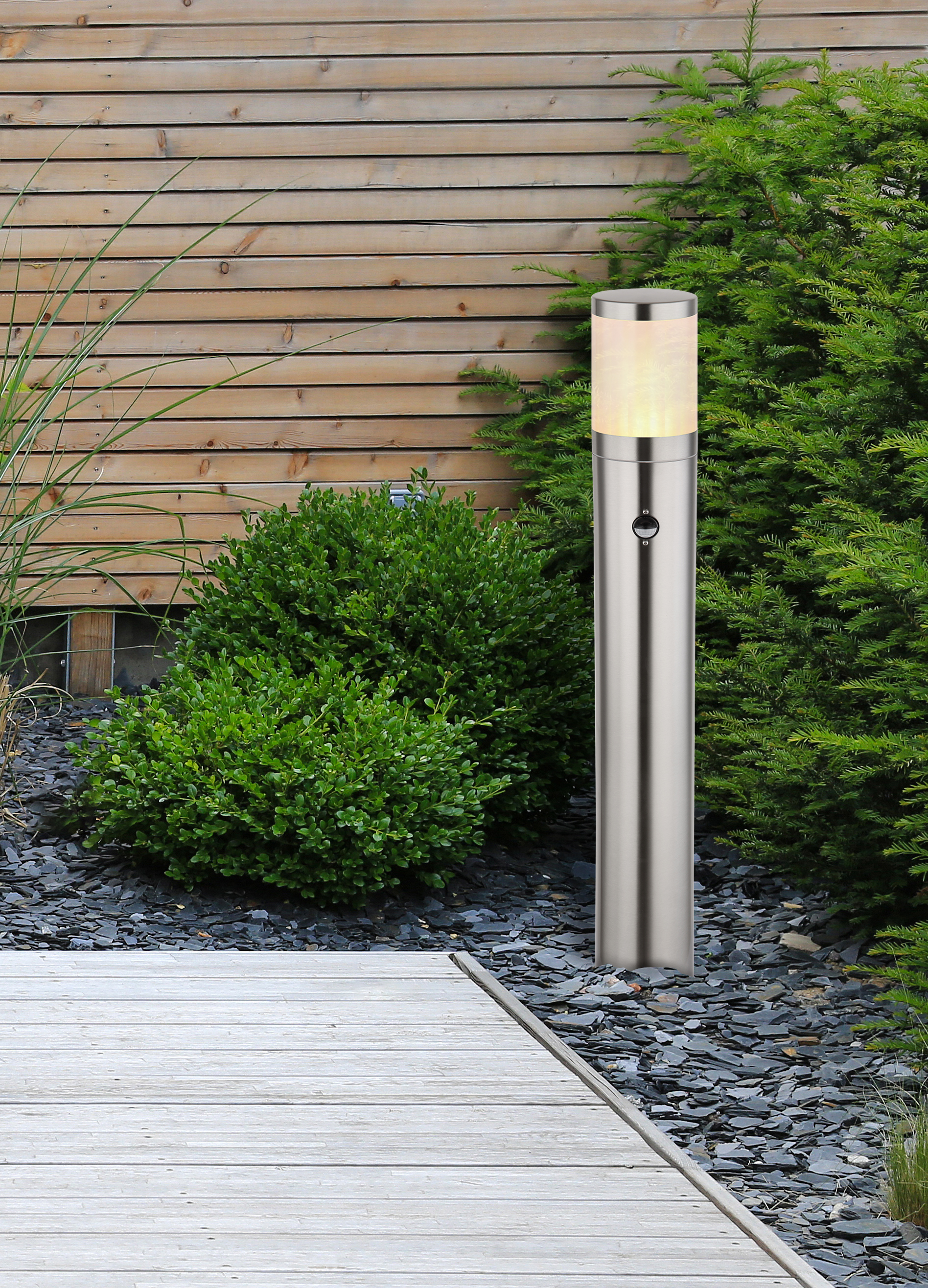 Questa lampada da esterno dal design moderno appartiene alla serie Xeloo ed è realizzata in acciaio inox color argento e plastica opalina. Dotata di classe di protezione IP44, è ideale per l'uso esterno. L'attacco E27 esistente (max. 60W) nell'apparecchio cilindrico da esterno da 80 cm offre l'opportunità di determinare autonomamente il colore e la luminosità della luce. Il sensore in dotazione reagisce nell'intervallo di 4-8 m e 110°. Con questa lampada potrete completare con stile le vostre aree esterne. Create nuovi punti focali.