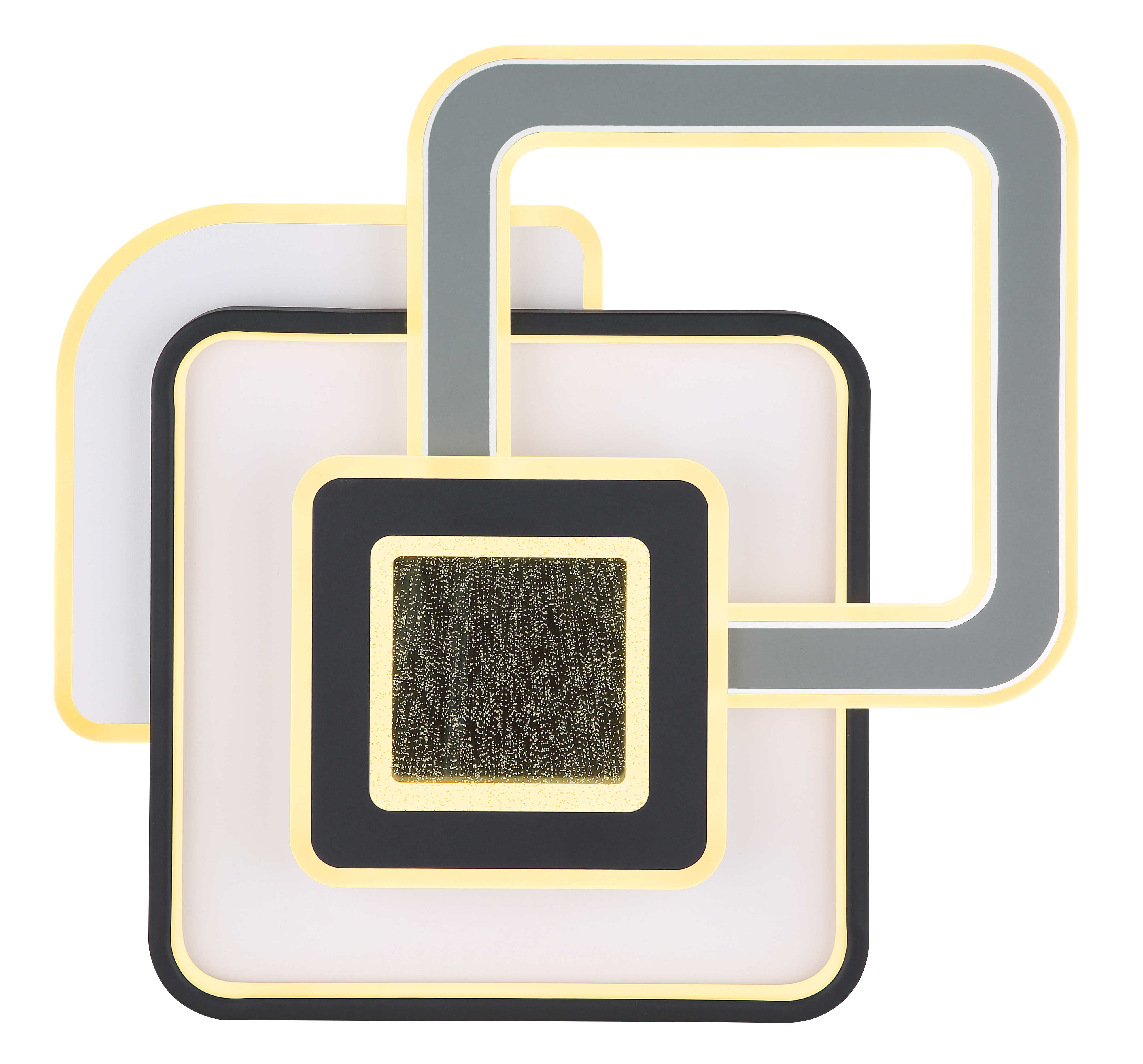 Questa lampada da soffitto della serie BRIENNA è composta da una struttura in metallo nei colori bianco opaco e grigio, oltre a un paralume in acrilico opalino e da un elemento in alluminio nero opaco. Il disco decorativo ha un effetto "sabbia di cristallo" ed è realizzato in acrilico trasparente. Le dimensioni della lampada sono 500x480x80mm. È dotato di una lampadina a LED con una potenza di 40W a 230V e ha una potenza luminosa di sorgente di 4900lm e uscita di 2100lm ad una temperatura di colore di 3000K.