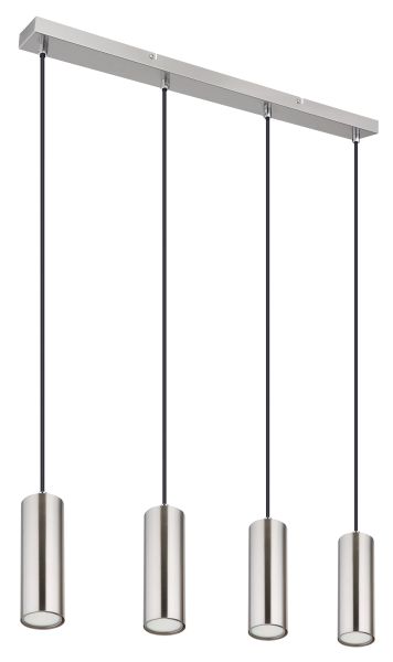 La lampada a sospensione allungata ROBBY colpisce per il suo design moderno e tecnico e porta accenti di stile nella vostra casa. Il corpo in metallo nichel opaco garantisce un look elegante e senza tempo, mentre il paralume in metallo rende la lampada una vera attrazione. Con una lunghezza di 650 mm e una larghezza di 60 mm, questa lampada è ideale per tavoli da pranzo, isole della cucina o come illuminazione d'accento nella zona giorno. La lampada è dotata di quattro piastre sospese e offre un'illuminazione uniforme e piacevole. Il LED GU10 fornisce un'emissione luminosa di 250 lumen e una temperatura di colore bianco caldo di 3000 K, che crea un'atmosfera accogliente. Include LED GU10. La lampada a sospensione ROBXY unisce un design moderno con un'illuminazione funzionale e si adatta perfettamente agli spazi abitativi moderni.