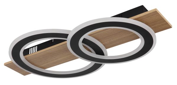Scopri la lampada da soffitto JAYDEN, una soluzione elegante per la tua stanza. La forma rettangolare di questa lampada è caratterizzata da due anelli che si fondono armoniosamente nella forma del paralume. Il corpo è realizzato in plastica con superficie ottica legno scuro, mentre il paralume è realizzato in metallo con rivestimento in acrilico nero opaco e opalino. L'apparecchio offre un'illuminazione bianca calda con una temperatura di colore di 3000 K, ideale per decorare soggiorni, camere da letto e uffici. Le sue opzioni di installazione flessibili e il design estetico rendono questo apparecchio ideale per illuminare spazi in cui si desidera un aspetto moderno ed elegante.