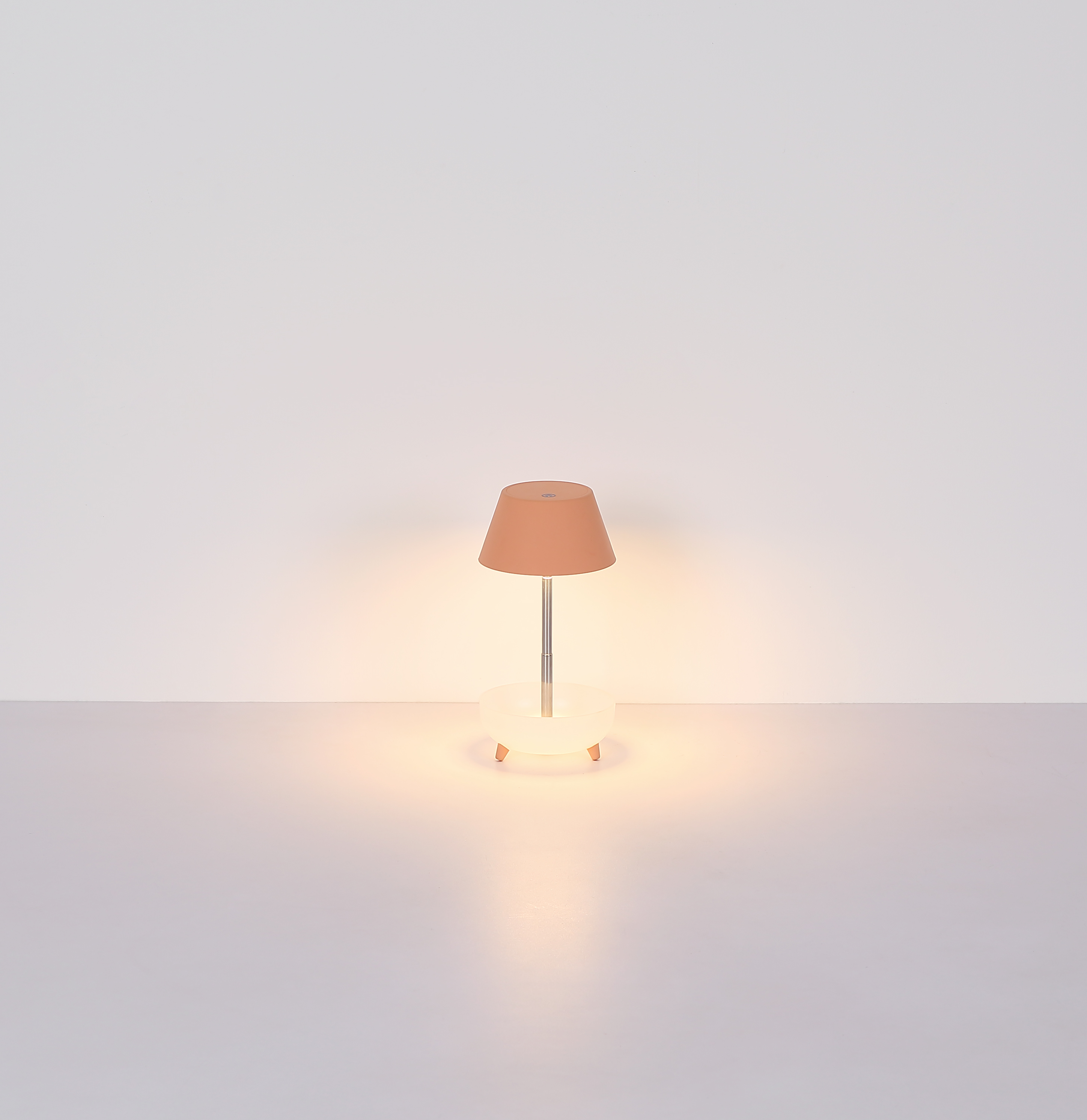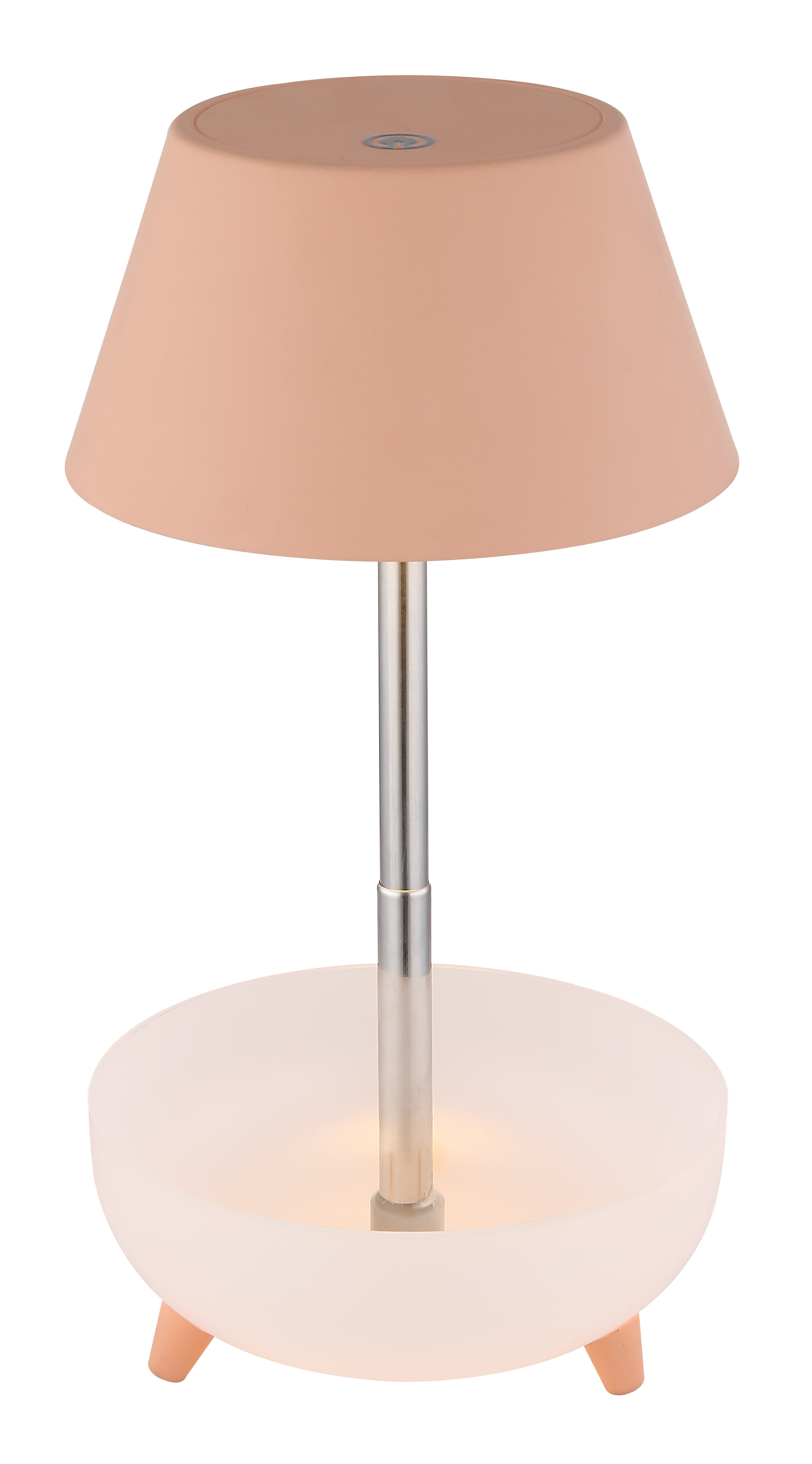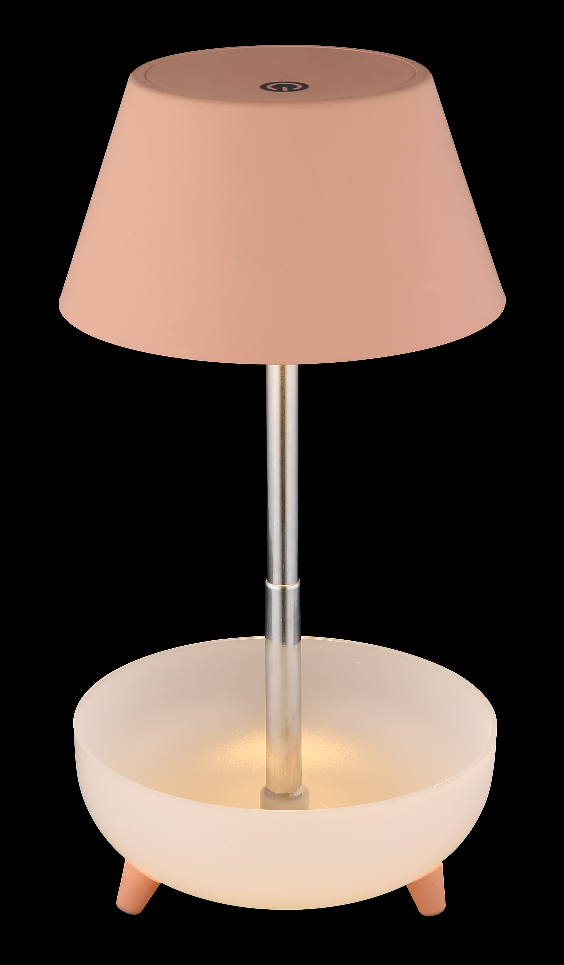 La POKI è una lampada da tavolo attraente e pratica che si distingue per la sua forma rotonda e l'aspetto contemporaneo. Il corpo del POKI è realizzato in plastica satinata con un design in acciaio inossidabile e offre un'elegante base per la cornice del paralume luminoso. Il paralume opaco color pesca fornisce un'illuminazione unica e conferisce al POKI un carattere unico. Grazie al telescopio e al vassoio per minuteria, il POKI può essere azionato in modo semplice e confortevole. L'illuminazione a LED è dimmerabile e può essere facilmente regolata tramite una funzione touch dimmer e un interruttore touch-on/off. Con un diametro di 120 mm, il POKI è un ingresso perfetto nel mondo delle moderne soluzioni di illuminazione. L'uscita è di 100 lumen, il tempo di ricarica è di circa 4 ore, mentre il tempo di illuminazione è di circa 8 ore. E come vantaggio: il POKI si illumina anche durante la ricarica!