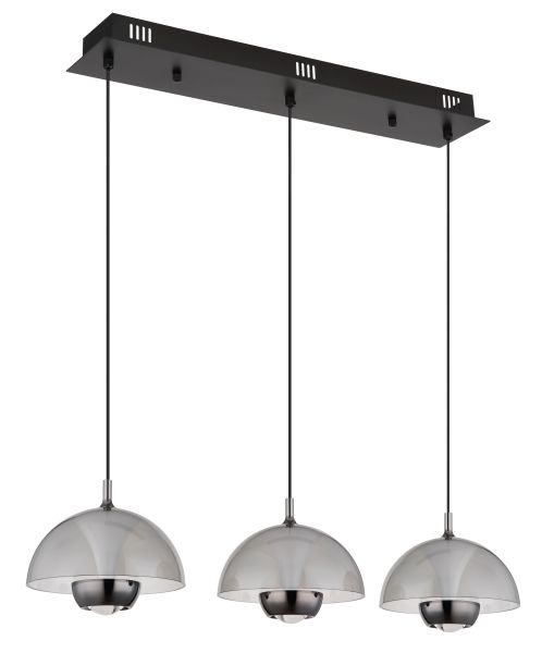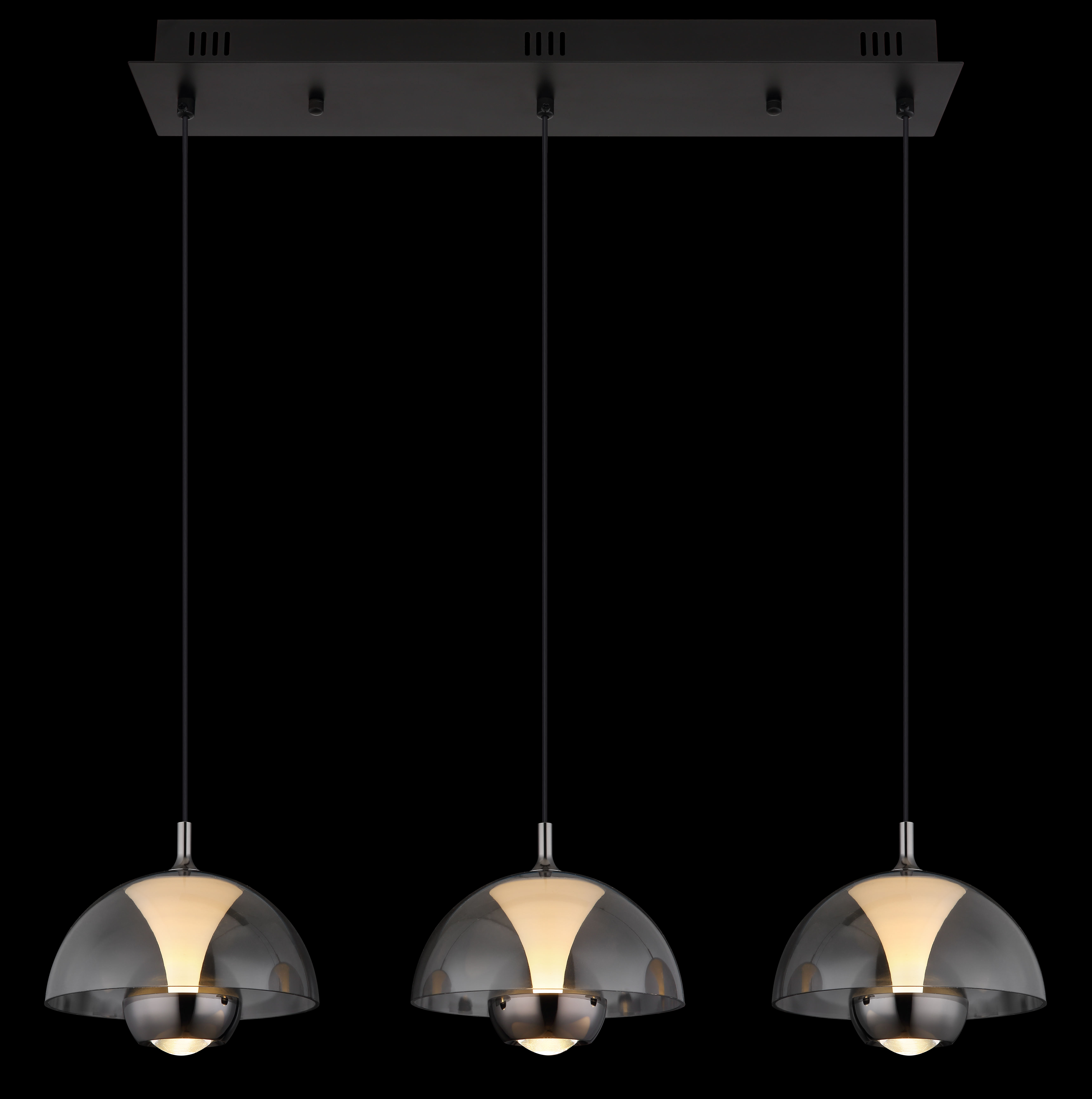 Scopri ARUS, un'elegante lampada a sospensione che si distingue per la sua armoniosa architettura di design. L'ARUS è costituito da un binario dritto che ha tre ombrelli rotondi montati su lunghi ganci. I paralumi sono dotati di faretti all'interno, che creano una luce calda e diffusa. La lunghezza della lampada consente di posizionarla anche in lunghe stanze o corridoi. Il corpo della lampada è realizzato in metallo nero opaco, che le conferisce un aspetto moderno ed elegante. I paralumi stessi sono realizzati in plastica e hanno una finitura color fumo, mentre i bordi interni sono realizzati in metallo bianco opaco. Il faretto in alluminio all'interno si illumina e fornisce un ulteriore effetto luminoso. Con una potenza di 1400 lumen e una temperatura di colore di 3000K, l'ARUS è la scelta perfetta per chi cerca un'illuminazione moderna ed efficace per il proprio salotto o ufficio.