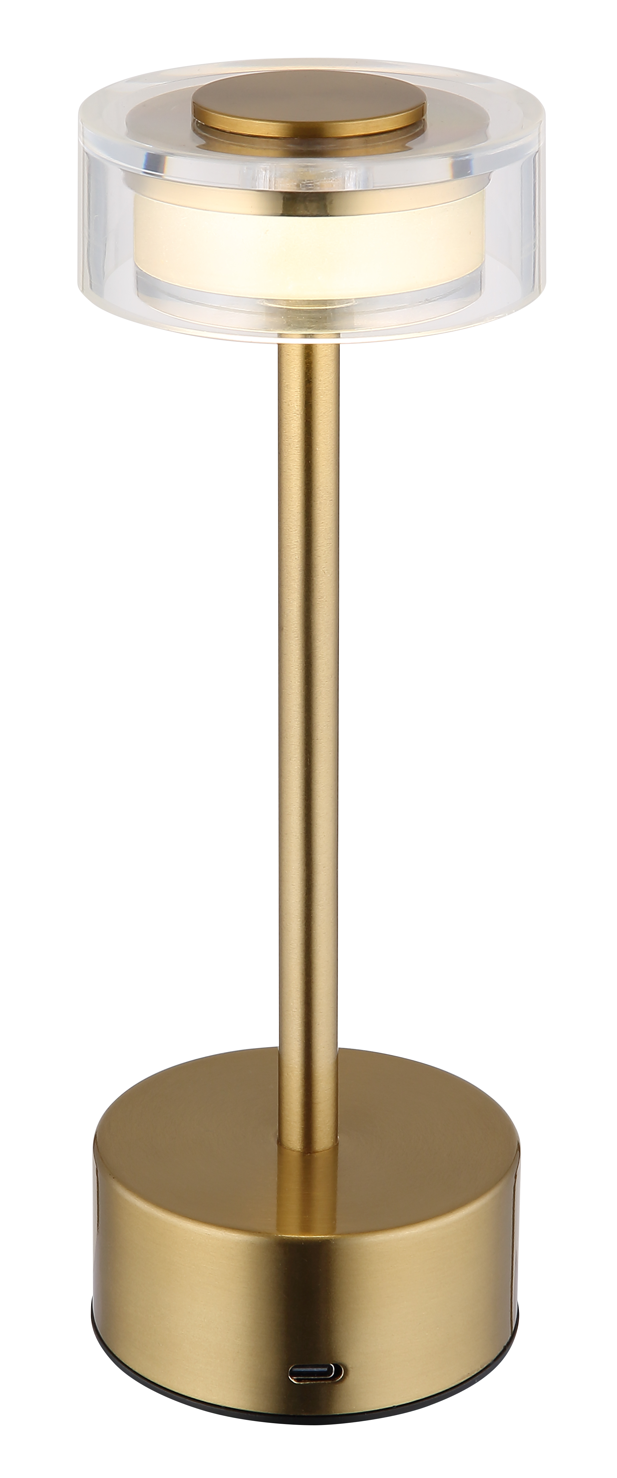 La lampada da tavolo SHIRA colpisce per il suo design moderno e la sua forma rotonda. Il corpo in metallo color ottone opaco dona alla lampada un tocco elegante. Il paralume è realizzato in acrilico trasparente, acrilico color fumo e plastica opalina, che garantisce una piacevole diffusione della luce. La lampada da tavolo SHIRA è dimmerabile e ha un dimmer touch continuo e la possibilità di fissare i colori. Con una potenza di 108 lumen e una temperatura della luce variabile da 2700 K a 4000 K, offre un'illuminazione individuale secondo i vostri desideri. La luce viene fornita con un cavo di ricarica USB e ha una pratica funzione di accensione/spegnimento touch per una facile accensione e spegnimento. Con un tempo di ricarica di circa 4 ore e un'autonomia di circa 6 ore, è una fonte di luce affidabile per varie occasioni. Inoltre, può essere utilizzato anche durante la ricarica, il che ne aumenta ulteriormente la flessibilità.