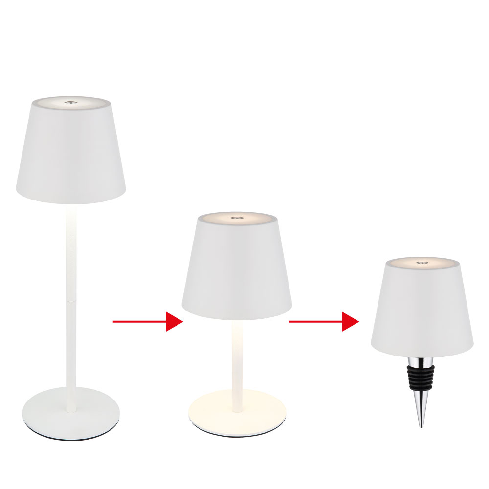 La lampada da tavolo VANNIE I offre un'ampia gamma di applicazioni e un design moderno. Il suo corpo rotondo in metallo bianco opaco conferisce alla lampada un aspetto elegante. Il paralume è realizzato in plastica bianca opaca e plastica opalina, che consente una piacevole distribuzione della luce. Questa lampada da tavolo ha tre diversi usi: può essere utilizzata come lampada da tavolo con luce intensa con un tubo dritto, con due tubi per un'illuminazione più morbida o come attacco per bottiglia. È dimmerabile e dispone di un dimmer touch continuo che consente la regolazione individuale della luminosità. I colori possono essere fissati per creare l'atmosfera luminosa desiderata. La luce è dotata di un interruttore on/off touch e viene fornita con un cavo di ricarica USB. Con un diametro di 115 mm, offre dimensioni compatte e una potenza di 200 lumen, oltre a una temperatura della luce variabile da 3000 K a 5000 K. La VANNIE I può essere utilizzata come lampada da tavolo con uno o due tubi o come attacco per bottiglia. Si accende durante la ricarica e ha un tempo di ricarica di circa 3 ore con un tempo di illuminazione di circa 4 ore. È inoltre certificato IP54, che lo protegge da polvere e spruzzi d'acqua.