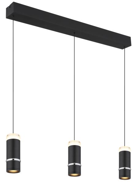 La lampada a sospensione ALVARADO si presenta con un corpo dritto e allungato in metallo nero opaco e tre faretti cilindrici. Il suo design senza tempo combina eleganza e funzionalità. I paralumi dei faretti sono realizzati in metallo nero opaco e sono rifiniti con un anello cromato in acrilico satinato. Con una potenza luminosa di 1100 lumen, questo apparecchio fornisce un'illuminazione brillante e crea un'atmosfera piacevole. Il cono di luce è regolabile, in modo da poter dirigere l'illuminazione secondo necessità. Ideale per la zona giorno, la sala da pranzo o la cucina, la lampada a sospensione ALVARADO aggiunge un tocco moderno a qualsiasi stanza. Grazie alla sua versatilità e al suo design accattivante, si inserisce armoniosamente in diversi stili di arredamento.