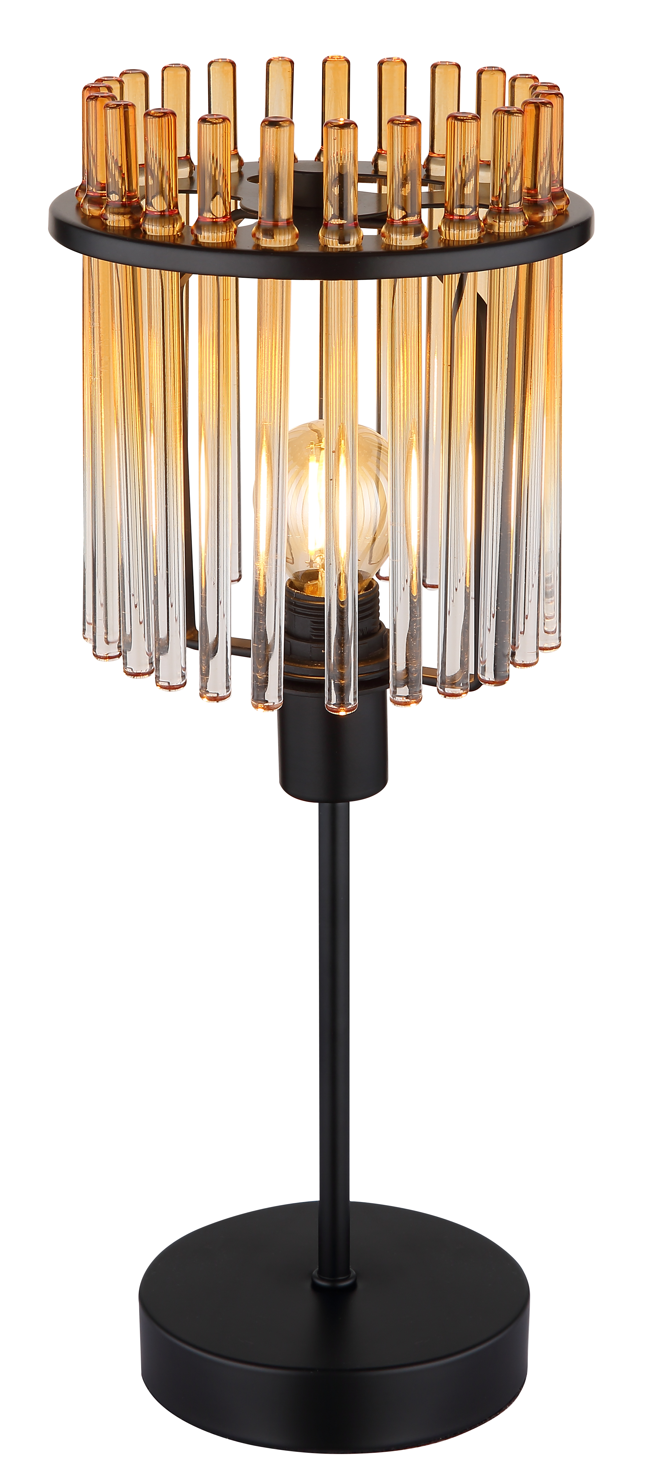 La lampada da tavolo GORLEY combina un design elegante con una funzionalità pratica. Il suo corpo rotondo in metallo nero opaco porta un paralume altrettanto rotondo fatto di aste di vetro color ambra e trasparente, disposte ad arte e delicatezzamente. In questo modo si crea un piacevole gioco di luci e un'atmosfera calda nella stanza. La lampada da tavolo GORLEY è ideale come elegante elemento di illuminazione per scrivanie, comodini o consolle in soggiorni, camere da letto o uffici. L'interruttore a bilanciere sul cavo consente un facile utilizzo e rende la luce particolarmente facile da usare. Grazie al suo materiale di alta qualità e al design ben studiato, la lampada da tavolo GORLEY si integra armoniosamente negli stili di arredamento moderni e dona a ogni stanza un tocco elegante. Non è solo funzionale, ma anche un elemento decorativo che valorizza la stanza e arricchisce l'ambiente.