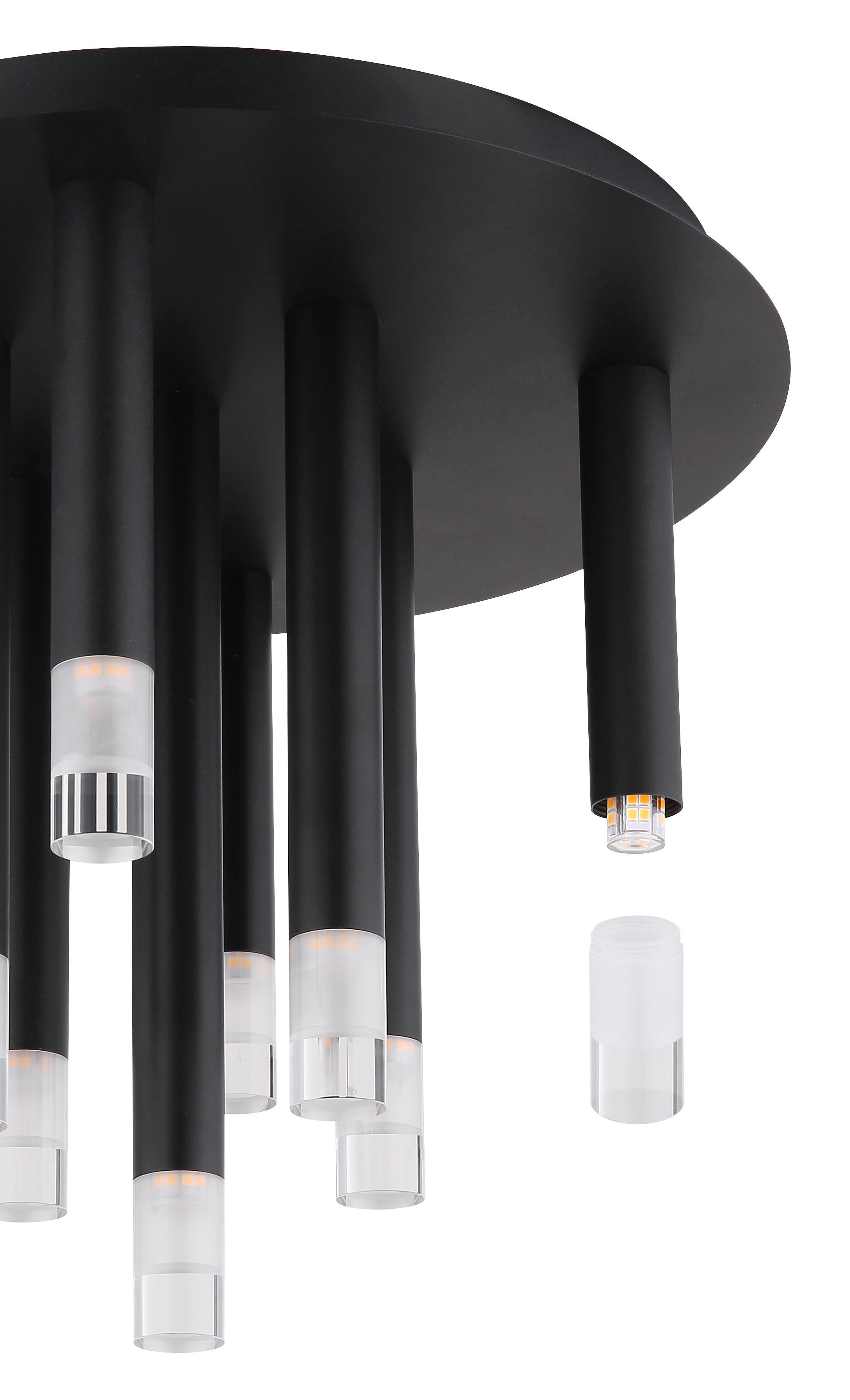 La lampada da soffitto RYAN colpisce per il suo design moderno ed elegante. Il suo corpo rotondo in metallo nero opaco aggiunge un tocco di stile a qualsiasi stanza. I nove sottili paralumi cilindrici sono anch'essi realizzati in metallo nero opaco e sono rifiniti con acrilico satinato e trasparente, che garantisce una distribuzione piacevole e uniforme della luce. Con un diametro di 340 mm, RYAN si adatta perfettamente a diversi ambienti di diverse dimensioni e offre una soluzione di illuminazione ottimale. Ideale per il soggiorno, la sala da pranzo o la camera da letto, la lampada da soffitto RYAN si integra perfettamente negli stili di arredamento moderni e pone accenti di stile. La combinazione di nero opaco e acrilico trasparente conferisce alla lampada un'estetica contemporanea e garantisce un armonioso gioco di luci. RYAN non è solo una fonte di luce funzionale, ma anche un elemento decorativo che conferisce a ogni stanza un'atmosfera speciale.