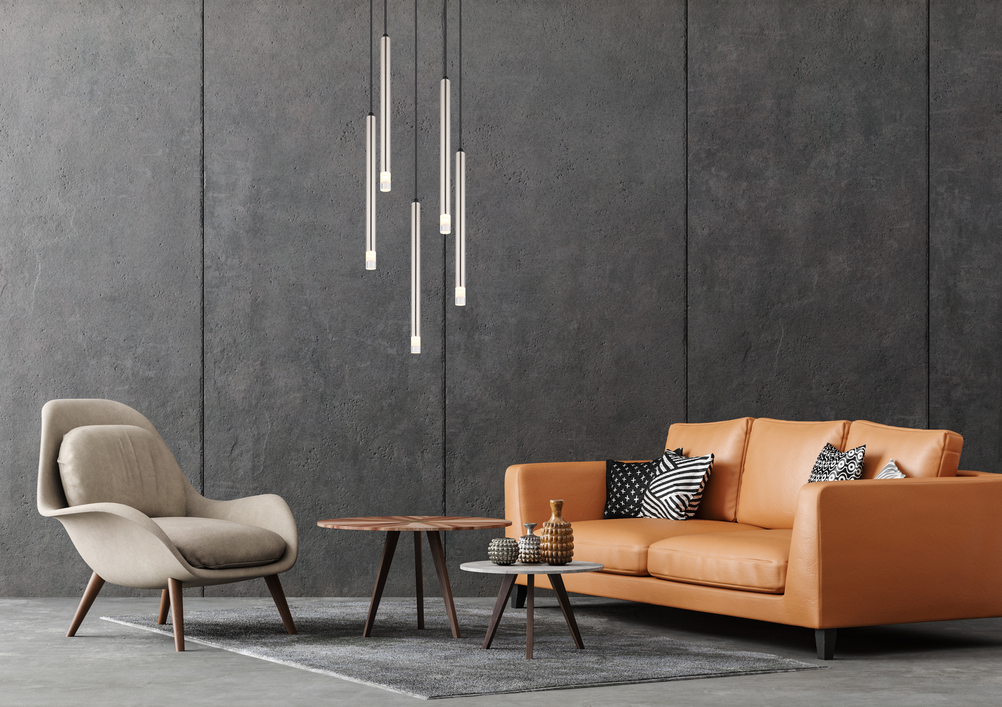 La lampada a sospensione RYAN colpisce per il suo design moderno ed elegante. Con un corpo rotondo realizzato in nichel opaco, si integra armoniosamente in vari salotti. La lampada è dotata di cinque sottili paralumi cilindrici, anch'essi realizzati in nichel opaco e acrilico satinato. Questa combinazione garantisce una distribuzione della luce uniforme e piacevole. I paralumi sono sospesi in una disposizione rotonda, che conferisce all'apparecchio un effetto visivo speciale. RYAN è ideale per l'uso in sale da pranzo, soggiorni o sopra tavolini da caffè. Il design chiaro e semplice rende questa lampada a sospensione un elemento senza tempo che può essere facilmente integrato in vari stili di arredamento. Con la sua lavorazione di alta qualità e l'aspetto elegante, la lampada a sospensione RYAN offre una soluzione di illuminazione funzionale ed estetica che crea un'atmosfera piacevole e illumina qualsiasi stanza con stile.