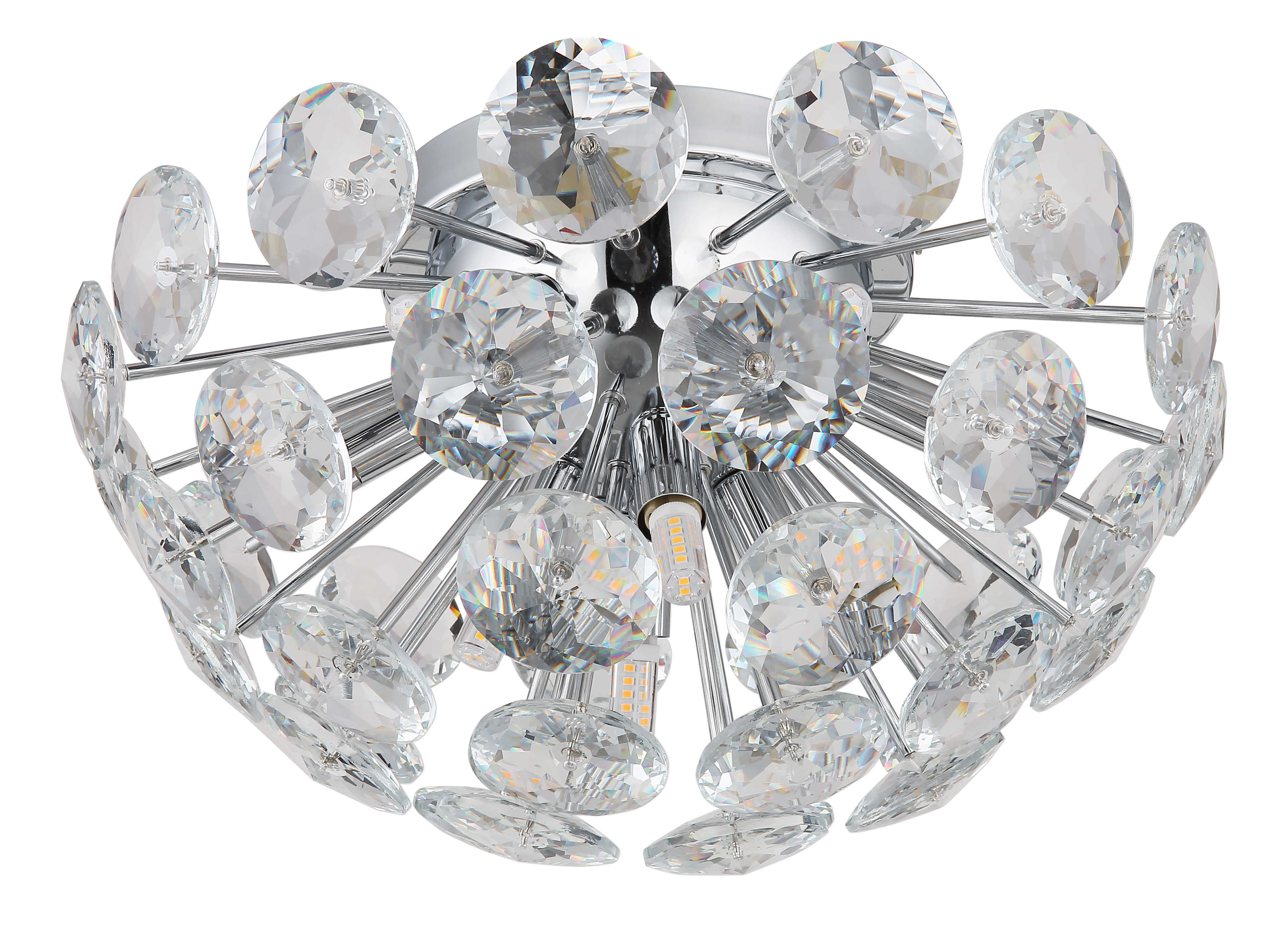 La plafoniera VARINA colpisce per il suo design elegante e i dettagli lussuosi. Il corpo in metallo cromato e i cristalli trasparenti K9 conferiscono alla lampada un aspetto elegante che valorizza ogni ambiente. Con un diametro di 390 mm e un'altezza di 220 mm, la lampada è compatta e accattivante allo stesso tempo. È progettata per utilizzare 10 lampadine G9 7W 230V (non incluse), offrendoti la flessibilità di regolare l'intensità della luce in base alle tue esigenze. La plafoniera VARINA combina un design elegante con un'illuminazione versatile e crea un'atmosfera elegante nel tuo soggiorno o nella sala da pranzo.