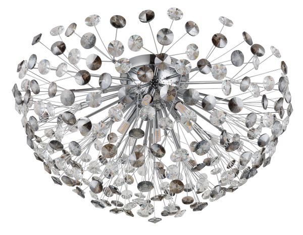 La lampada da soffitto "KATRINA" combina il design classico con l'eleganza moderna. Il suo paralume rotondo ed emisferico in cristalli K9 fumé e trasparenti non solo offre un'impressionante rifrazione della luce, ma anche un esterno elegante. Il corpo in metallo cromato sottolinea la lavorazione di alta qualità e conferisce alla lampada una nobile lucentezza. Dotata di lampadine LED 6XG9, la plafoniera emette luce bianca calda con una temperatura di colore di 3000K e produce una potenza di 350 lumen. Questa combinazione di qualità della luce e design lo rende ideale per l'uso in soggiorni, corridoi o camere da letto, dove non serve solo come fonte di luce, ma funge anche da elemento decorativo. La "KATRINA" è la scelta perfetta per chi apprezza l'estetica classica con tecnologia moderna e materiali di alta qualità.