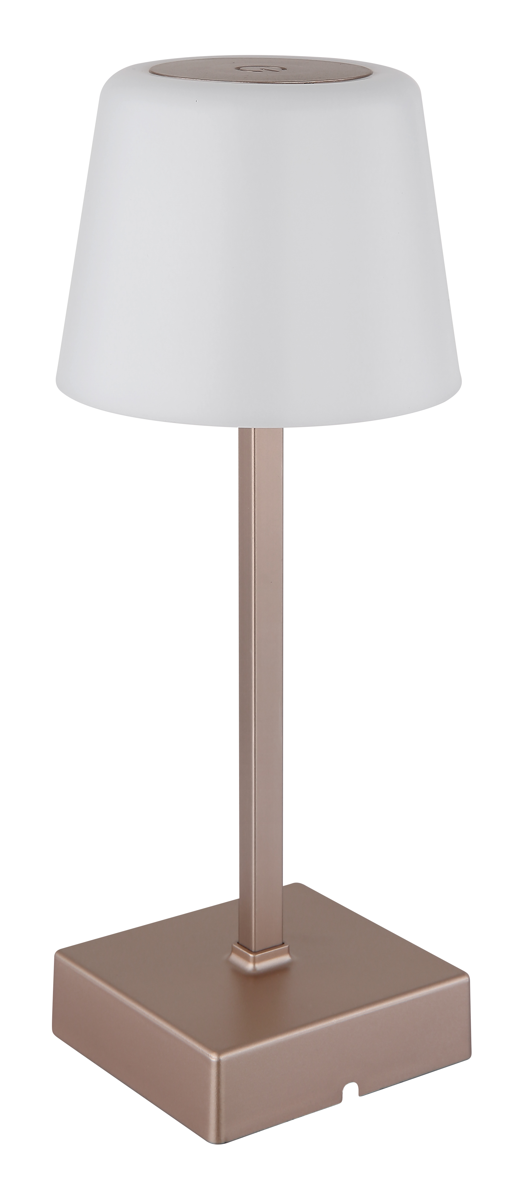 La lampada da tavolo XAYDEN colpisce per il suo design moderno e le sue funzioni versatili. Con un paralume rotondo in plastica opalina e una base quadrata in elegante plastica opaca color champagne e alluminio, è un punto culminante di stile in ogni stanza. Grazie al dimmer touch continuo, è possibile regolare la luminosità individualmente e la temperatura del colore è variabile da 3000K a 6000K per creare l'atmosfera luminosa desiderata. Inoltre, il colore della luce può essere fissato in modo che l'atmosfera desiderata rimanga permanente. XAYDEN ha un comodo interruttore touch-on/off e un cavo di ricarica USB che consente la ricarica in circa 4 ore. Con un'autonomia fino a 6 ore, la luce LED fornisce un'illuminazione di lunga durata. Le dimensioni compatte con un diametro di 85 mm e una potenza di 106 lumen rendono XAYDEN una fonte di luce flessibile e versatile che fornisce un'illuminazione piacevole in qualsiasi stanza.