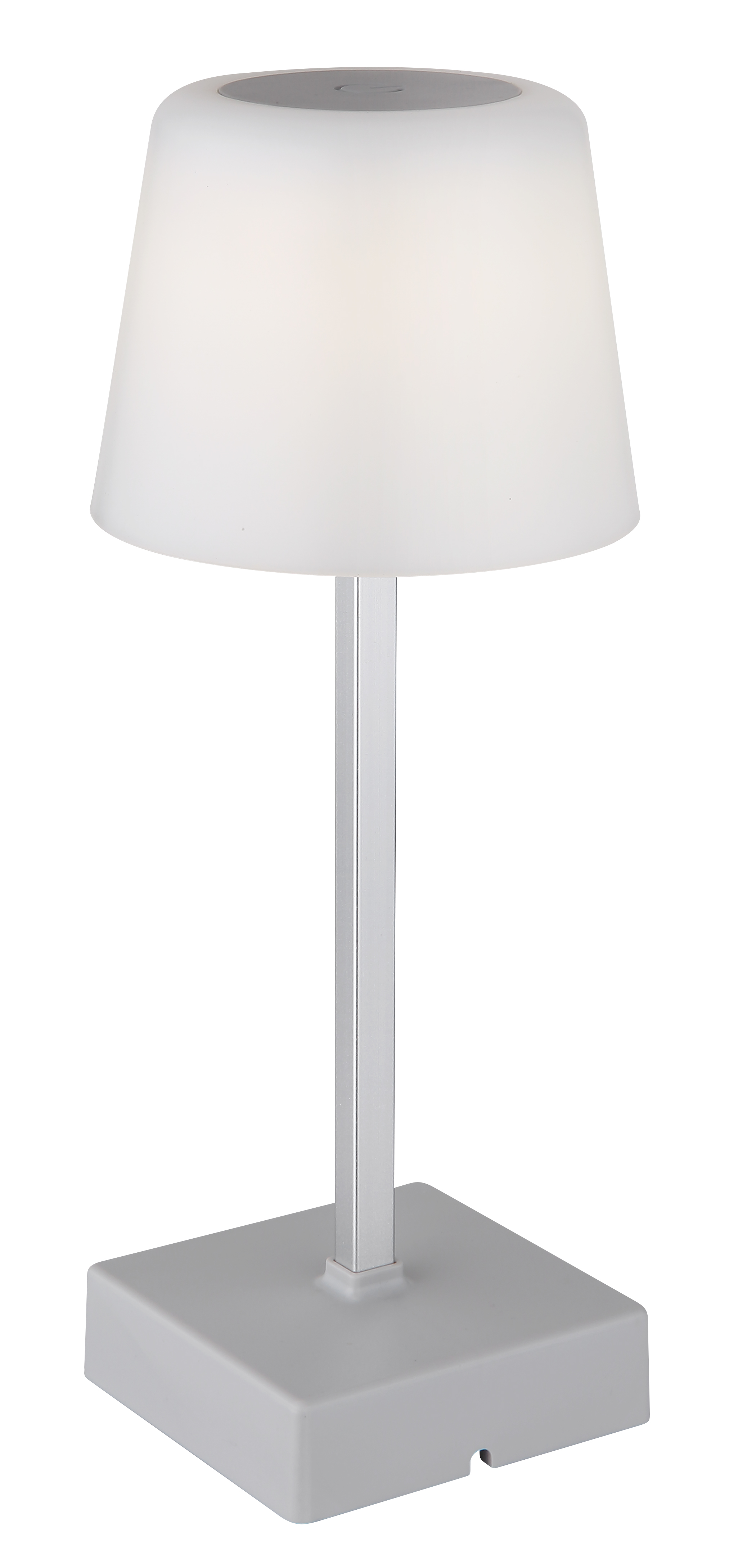 La lampada da tavolo XAYDEN combina un design moderno con funzioni pratiche. Il paralume rotondo in plastica opalina e la base quadrata in plastica opaca color argento e alluminio gli conferiscono un aspetto nobile. Grazie al dimmer touch continuo, la luminosità può essere regolata a piacere, mentre la temperatura del colore è variabile tra 3000 K e 6000 K. Puoi anche correggere il colore della luce per creare un'atmosfera coerente. L'interruttore touch-on/off rende il funzionamento particolarmente semplice. XAYDEN viene fornito con un cavo di ricarica USB e può essere caricato in circa 4 ore e quindi fornire luce per un massimo di 6 ore. Con una potenza di 106 lumen e un diametro di 85 mm, la luce LED è compatta e versatile. Il look moderno e il controllo flessibile dell'illuminazione rendono XAYDEN la lampada da tavolo ideale per un'illuminazione piacevole e personalizzabile in qualsiasi stanza.