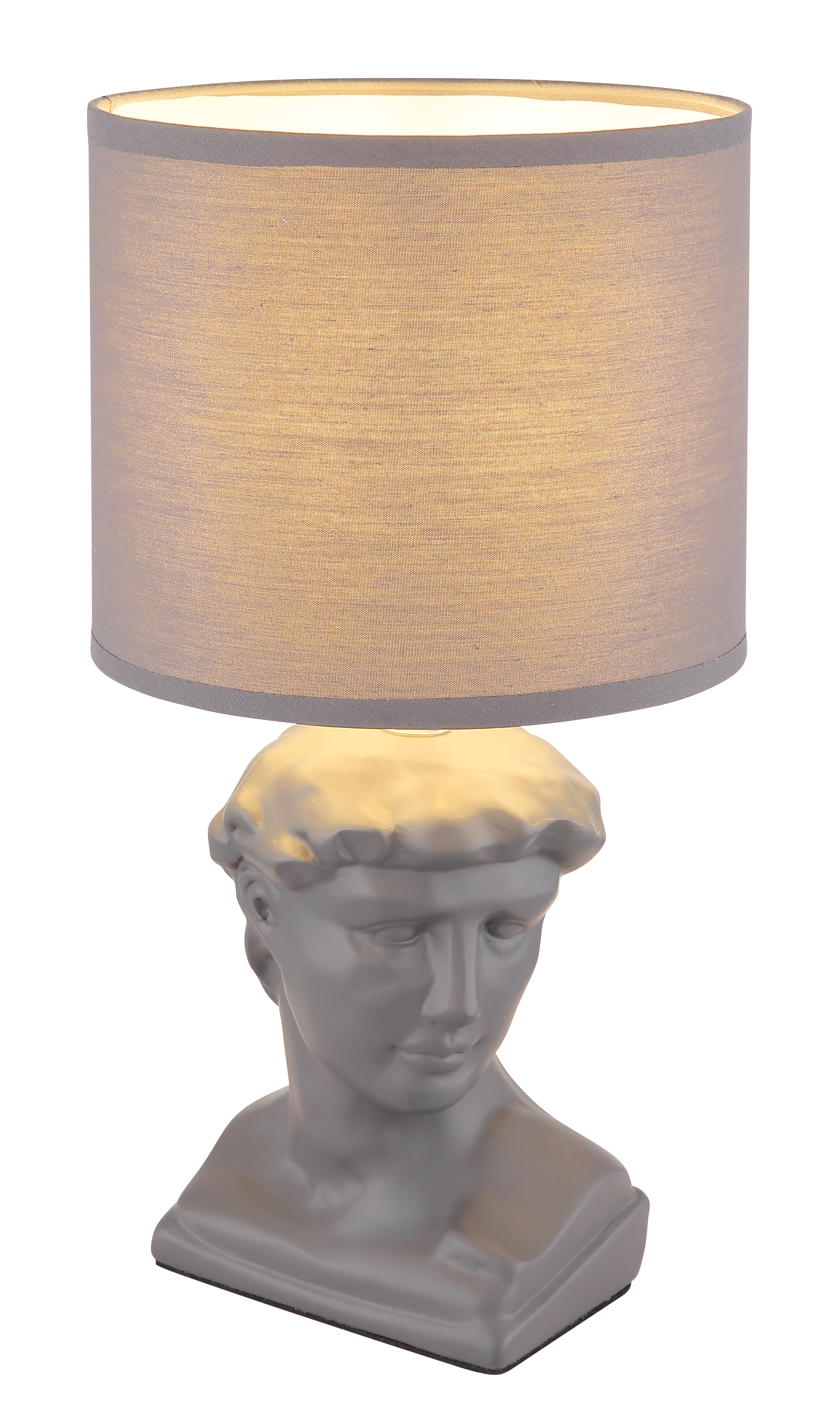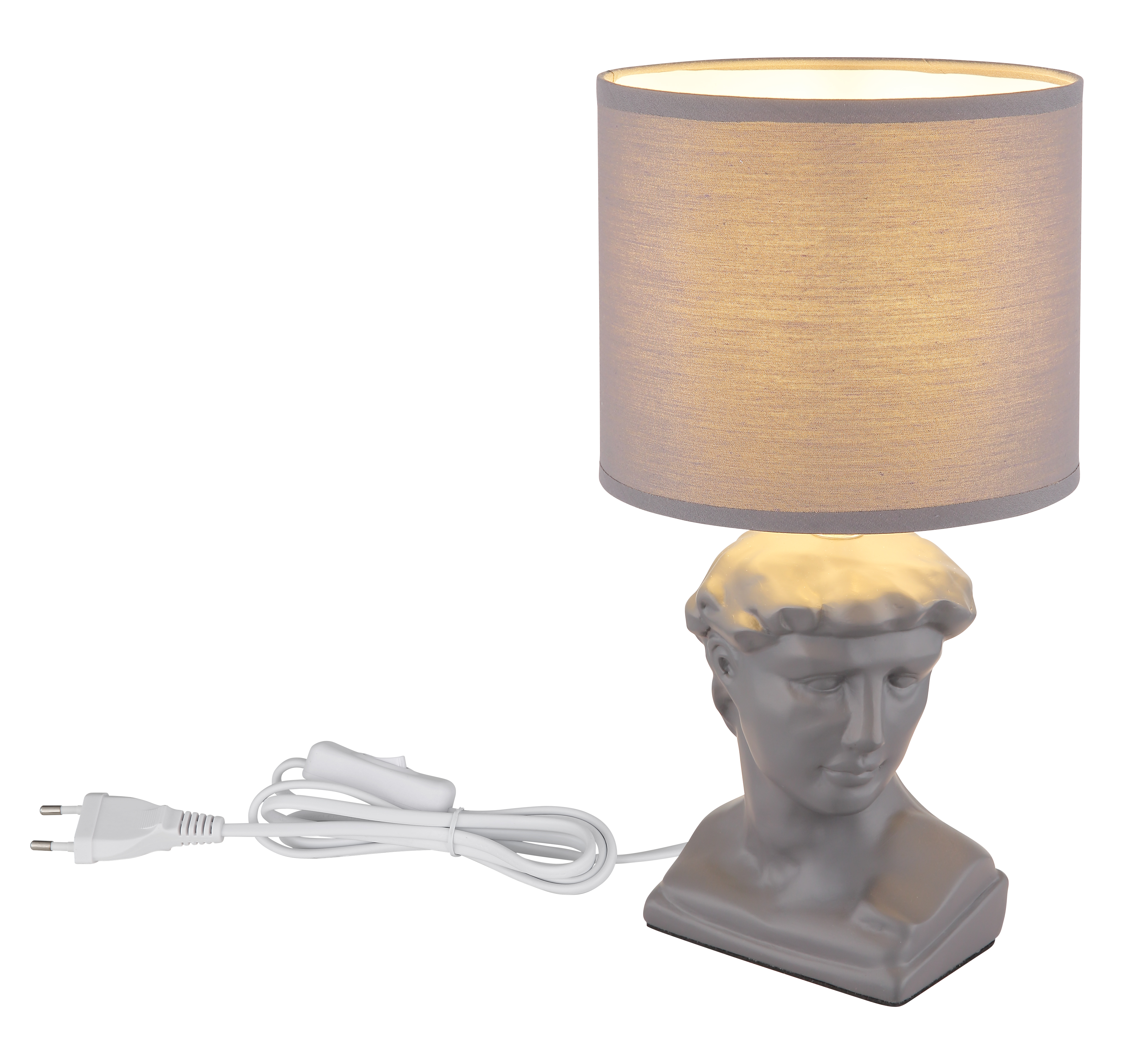 La lampada da tavolo HERMES combina l'eleganza classica con il design moderno. La sua base cilindrica, ispirata alla testa di Cesare, conferisce alla lampada un carattere unico e la rende un'elegante attrazione per gli occhi. Il corpo in ceramica grigia si armonizza perfettamente con la tonalità tessile grigia, che fornisce una distribuzione piacevole e uniforme della luce. Con un diametro di 175 mm, la lampada da tavolo HERMES si inserisce senza sforzo in diversi concetti di spazio e completa elegantemente i vostri interni. Il pratico interruttore a bilanciere sul cavo consente un funzionamento facile e comodo. L'attacco E14 offre flessibilità nella scelta della lampadina. La lampada da tavolo HERMES è funzionale e decorativa e pone accenti di stile nel tuo spazio abitativo.