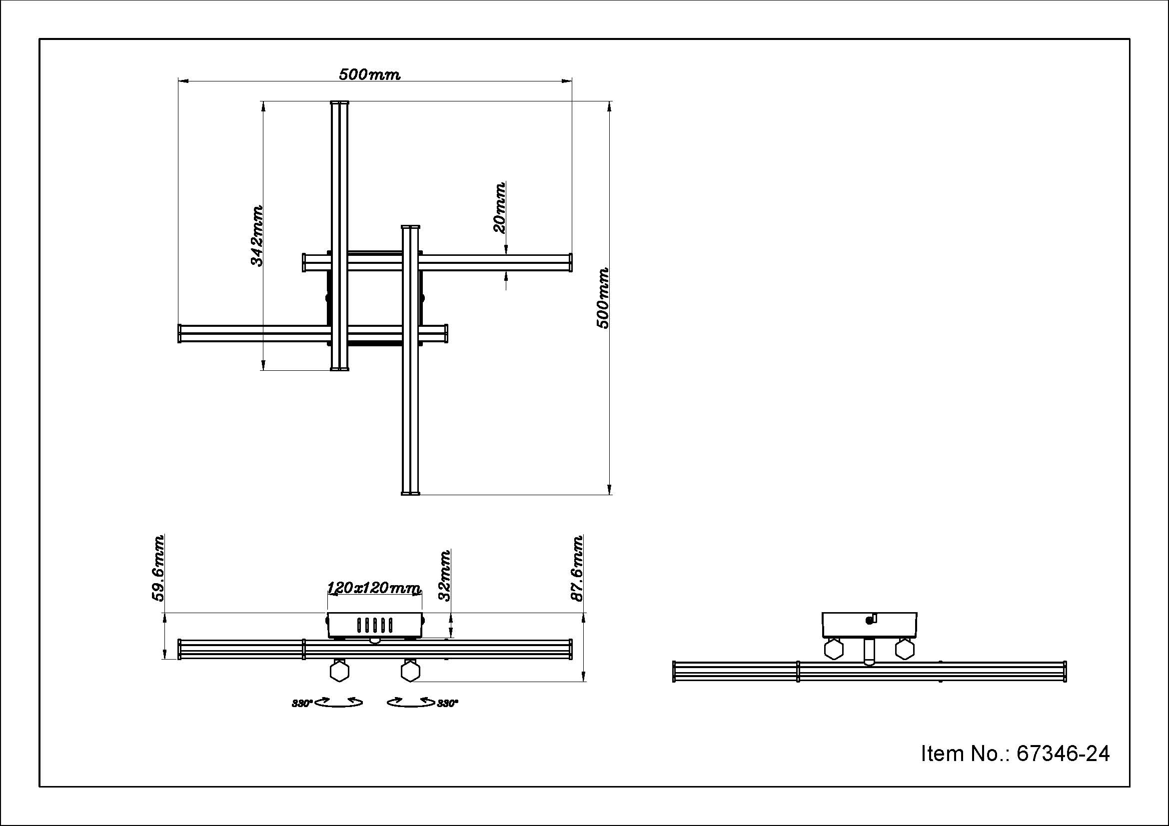 La lampada da soffitto Kirina offre un design moderno e squadrato con quattro profili esagonali girevoli. Il corpo in plastica nichelata opaca e cromo, così come il paralume in plastica trasparente e cristalli di plastica, forniscono un'illuminazione elegante. Con una potenza luminosa di 1840 lumen e un colore della luce di 4000 K, questo apparecchio fornisce un'illuminazione forte e uniforme. Perfetto per gli spazi moderni che cercano una soluzione di illuminazione elegante ed efficace.