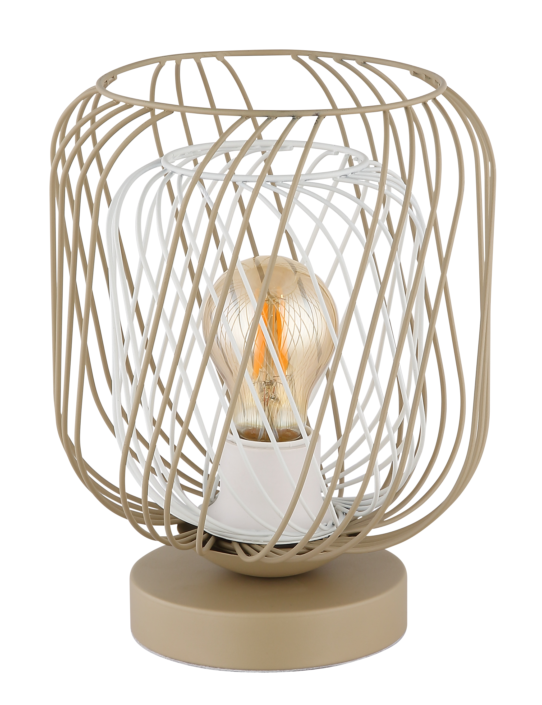 La lampada da tavolo DICHTI in stile vintage colpisce per il paralume rotondo e bulboso in rete metallica e un paralume interno che garantisce una distribuzione delicata della luce. Il corpo in metallo opaco color sabbia conferisce alla lampada un aspetto caldo e senza tempo che si armonizza perfettamente con i paralumi in rete metallica color sabbia e bianca. Con un diametro di 180 mm, la lampada da tavolo è ideale per tavoli più piccoli, credenze o come illuminazione d'accento suggestiva. Il pratico interruttore a bilico sul cavo consente un comodo utilizzo. La lampada da tavolo DICHTI è dotata di un attacco E27 per poter utilizzare la lampadina che preferisci. Viene fornita senza lampadine E27, dandoti la libertà di personalizzare l'intensità e il colore della luce a tuo piacimento. Un elemento di illuminazione elegante e funzionale che dona ad ogni ambiente un'atmosfera intima ed accogliente.