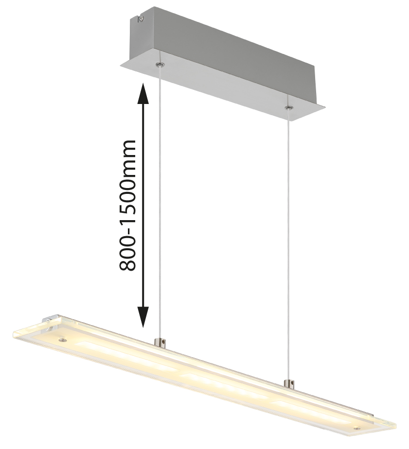 La lampada a sospensione rettangolare regolabile in altezza NOVAK colpisce per il suo design chiaro e moderno. Il corpo in nichel opaco conferisce alla lampada un aspetto elegante e senza tempo, mentre il paralume in vetro, chiaro e satinato, assicura una distribuzione uniforme e piacevole della luce. Con una lunghezza di 1150 mm e una larghezza di 90 mm, è ideale per sale da pranzo, isole cucina o spazi di lavoro. Il LED integrato (incluso) fornisce 1420 lumen con temperatura colore regolabile da 3000 K a 6500 K. La lampada è dimmerabile tramite touch dimmer, i colori sono fissabili e la funzione memoria ricorda l’ultima impostazione. NOVAK unisce funzionalità massima e design elegante, creando un’atmosfera stilosa in ogni ambiente.