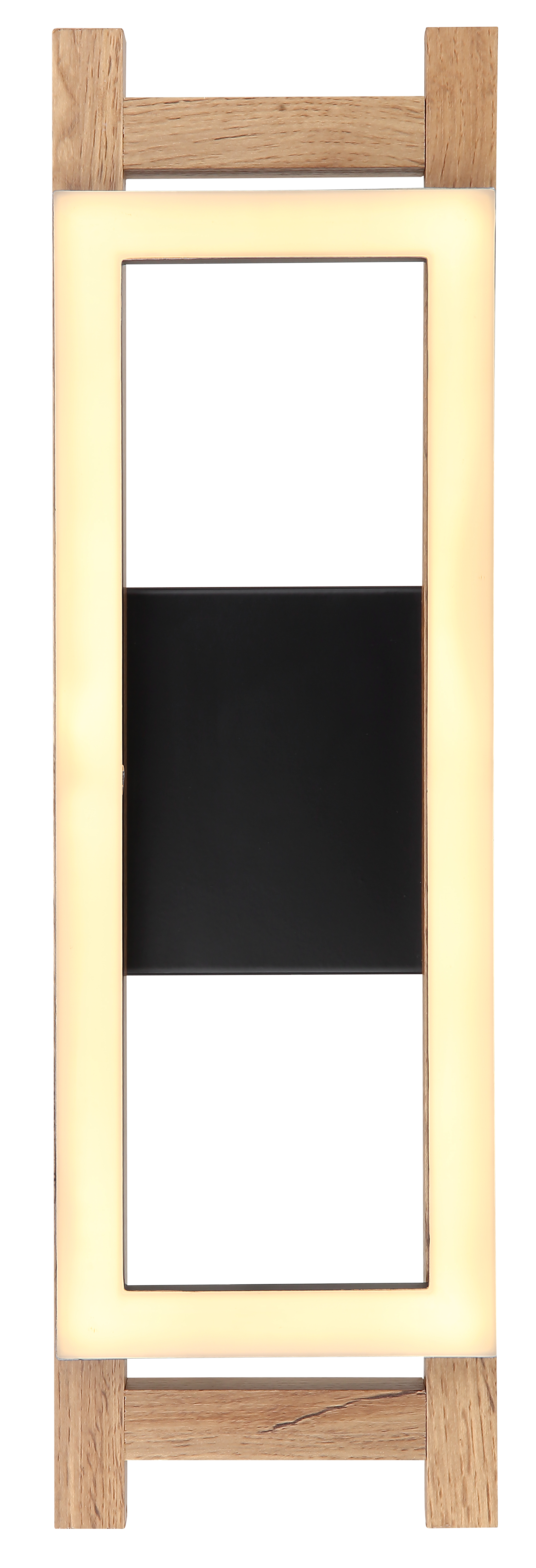 Questa lampada da parete moderna ispira con il suo aspetto favoloso. Consiste in un telaio di legno con una sporgenza di 7,5 cm a forma di scala con un'altezza di 45 cm e due pannelli LED rettangolari attaccati. L'intensità della luce di 3000 Kelvin crea una piacevole luce bianca calda e fornisce una grande atmosfera alla stanza.