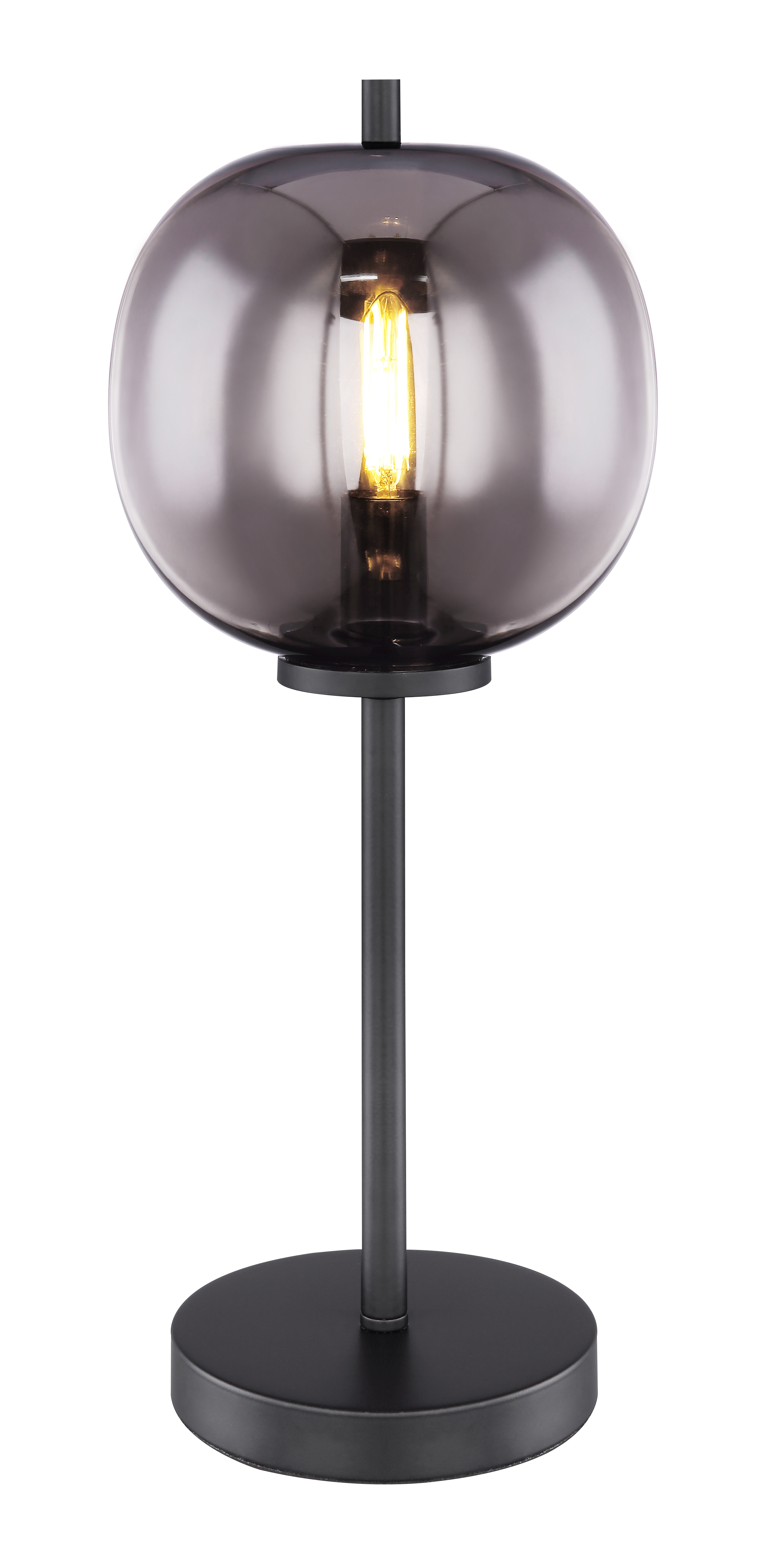Questa lampada da tavolo NERO è realizzata in metallo nero con un vetro color fumo (Ø 18,5 cm). Il vetro è individuale nel suo design. Questa lampada alta 45 cm, incluso l'interruttore, ha una presa E14 (max. 40 W), che permette una libera scelta della lampadina. A causa della loro longevità e del risparmio energetico, raccomandiamo l'uso di lampadine a LED. Questa lampada per interni è ideale per ogni soggiorno e la zona pranzo.