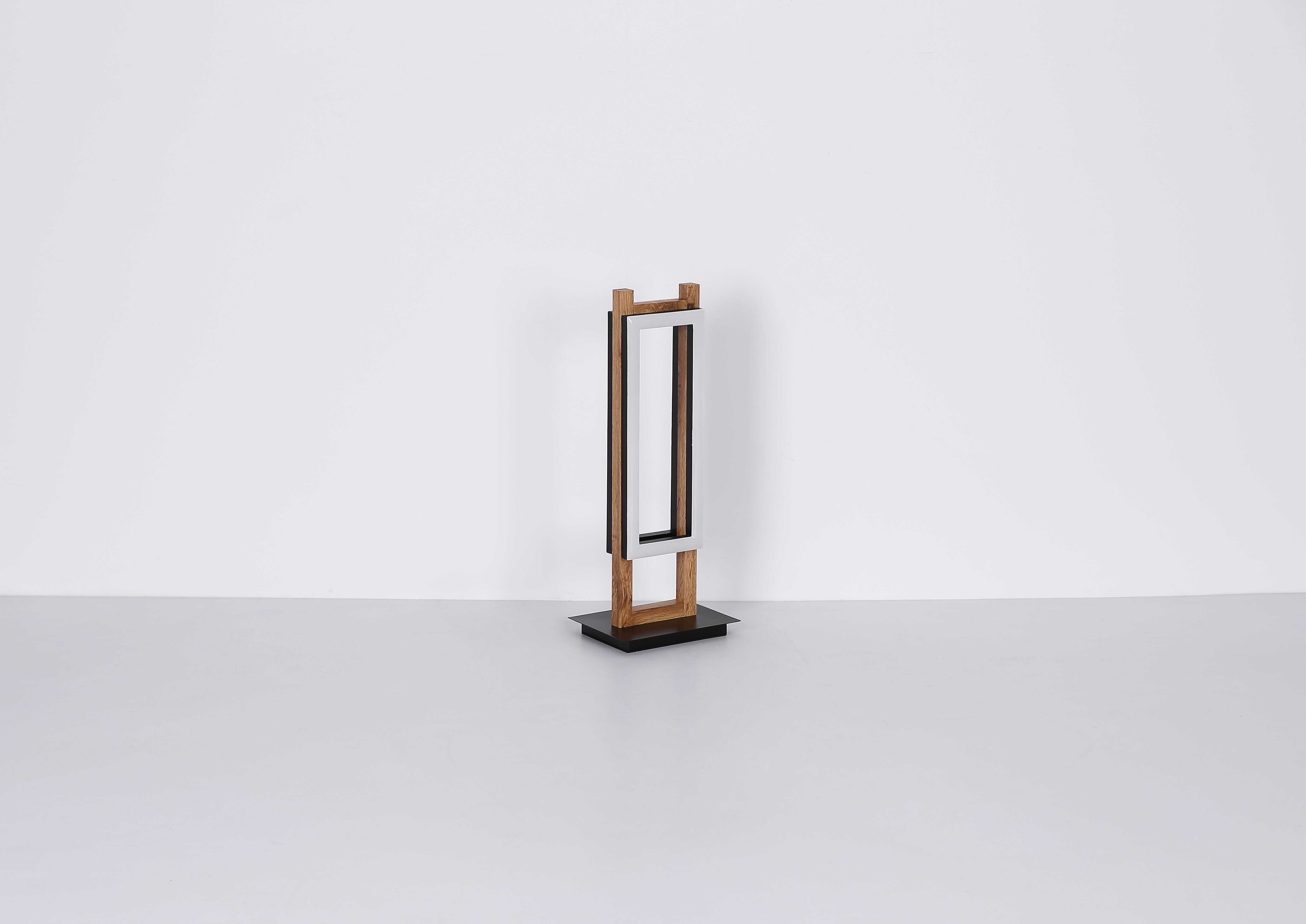 Questa lampada da tavolo moderna ispira con il suo aspetto favoloso. Consiste in un telaio di legno a forma di scala con un'altezza di 50 cm e due pannelli LED rettangolari attaccati. L'intensità della luce di 3000 Kelvin crea una piacevole luce bianca calda e fornisce una grande atmosfera alla stanza.
