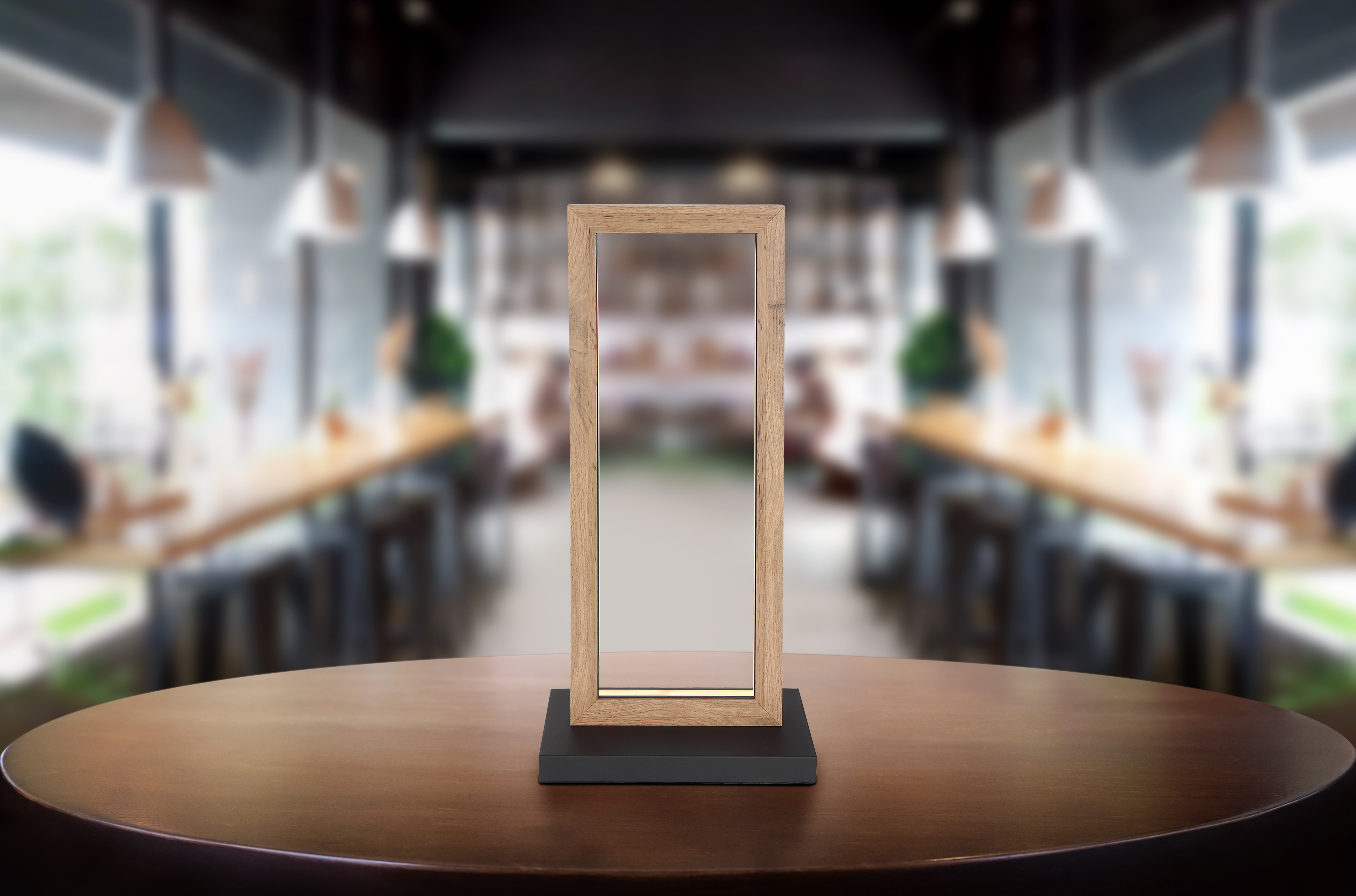 Questa grande lampada da tavolo ispira con un design moderno. Su una base rettangolare è presente una cornice da 52,5 cm in effetto legno con LED integrati, che emettono una luce bianca calda da 3000 Kelvin e offrono così un'atmosfera piacevole. Per mezzo di un interruttore a bilanciere sul cavo lungo 1,5 m, questa lampada da tavolo è facile da usare.