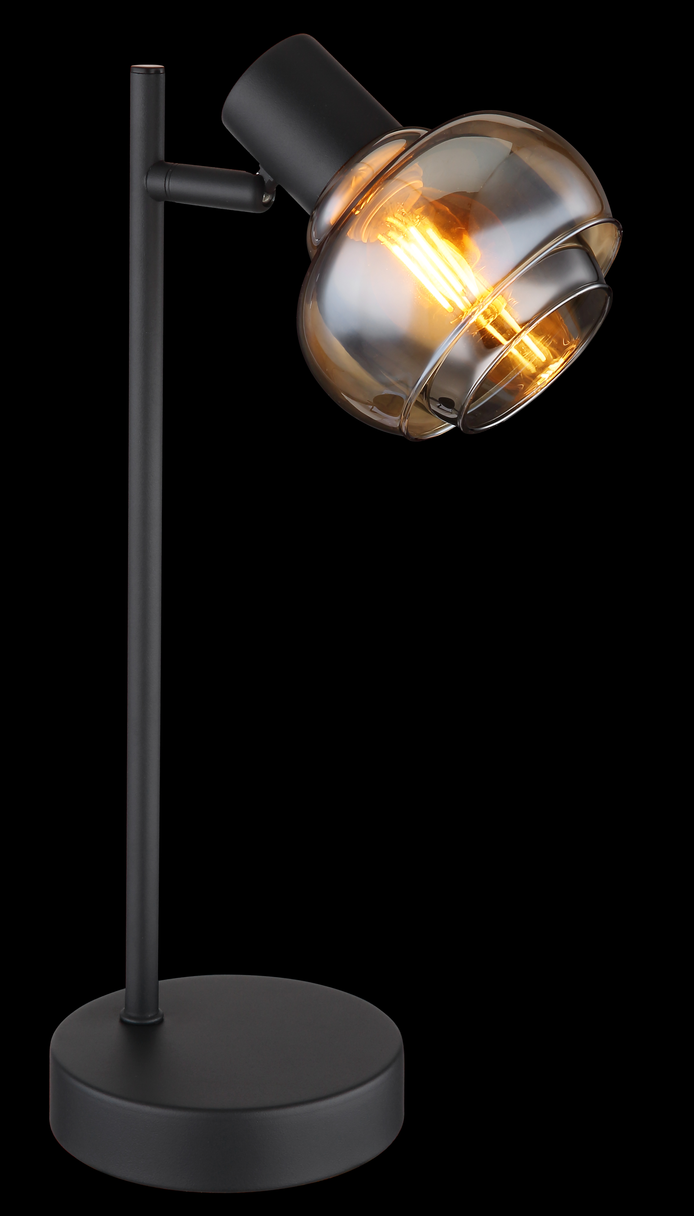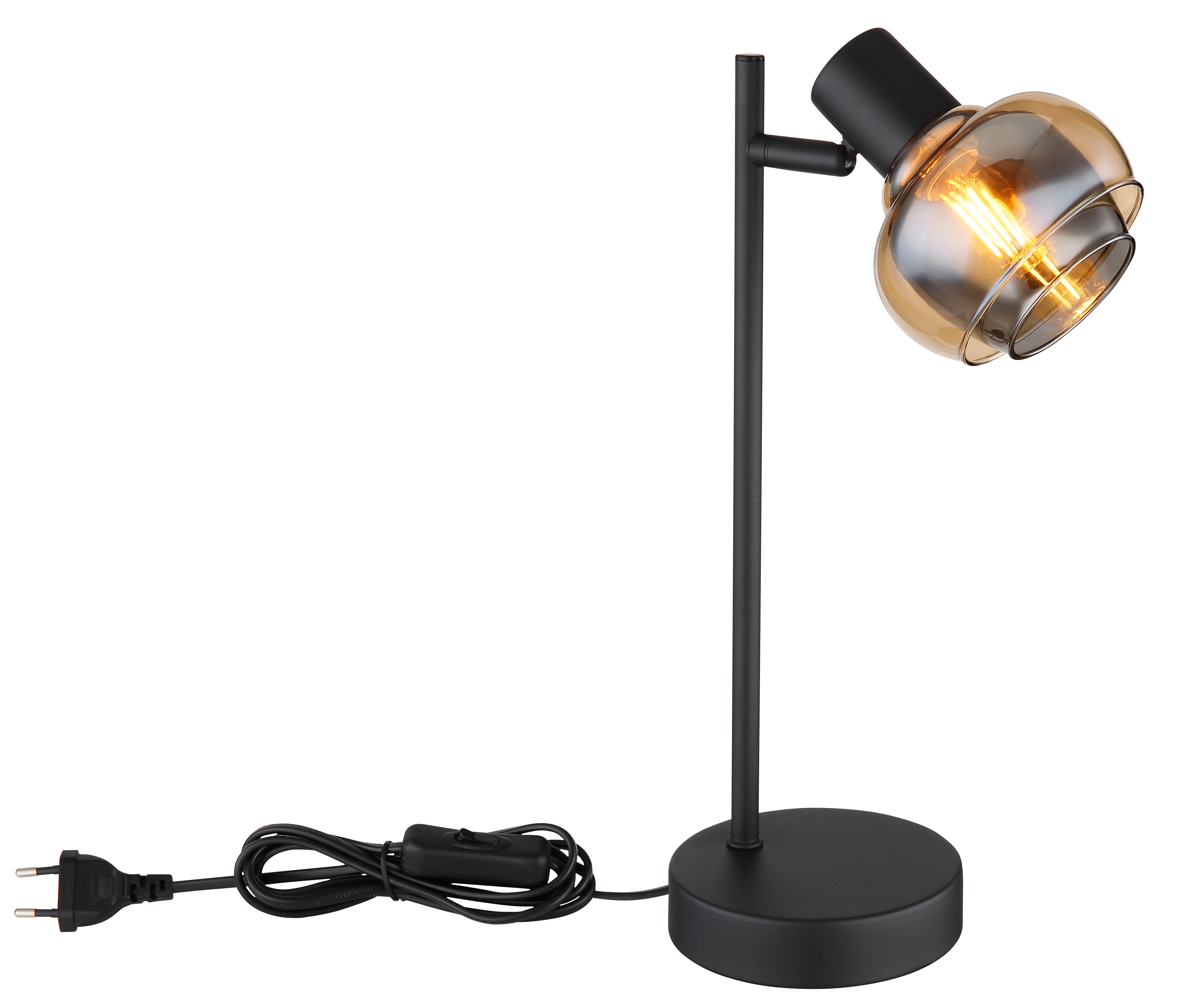 La nostra lampada da tavolo è realizzata in metallo laccato nero opaco e vetro trasparente nei colori ambra e fumo che riflettono magnificamente la luce. L'apparecchio è dotato di un interruttore a bilanciere sul cavo e ha una dimensione di LxWxH: 145x120x350mm. Il cavo è realizzato in PVC e nero. Si prega di notare che la lampadina non è inclusa. Avrai bisogno di 1 lampadina E14 con una potenza di 40 watt e una tensione di 230 volt. La nostra lampada da tavolo è un vero e proprio eye-catcher e sarà un punto culminante in ogni stanza. Con la sua combinazione unica di design moderno e materiali di alta qualità, è garantito per essere un colpo d'occhio nella vostra casa.