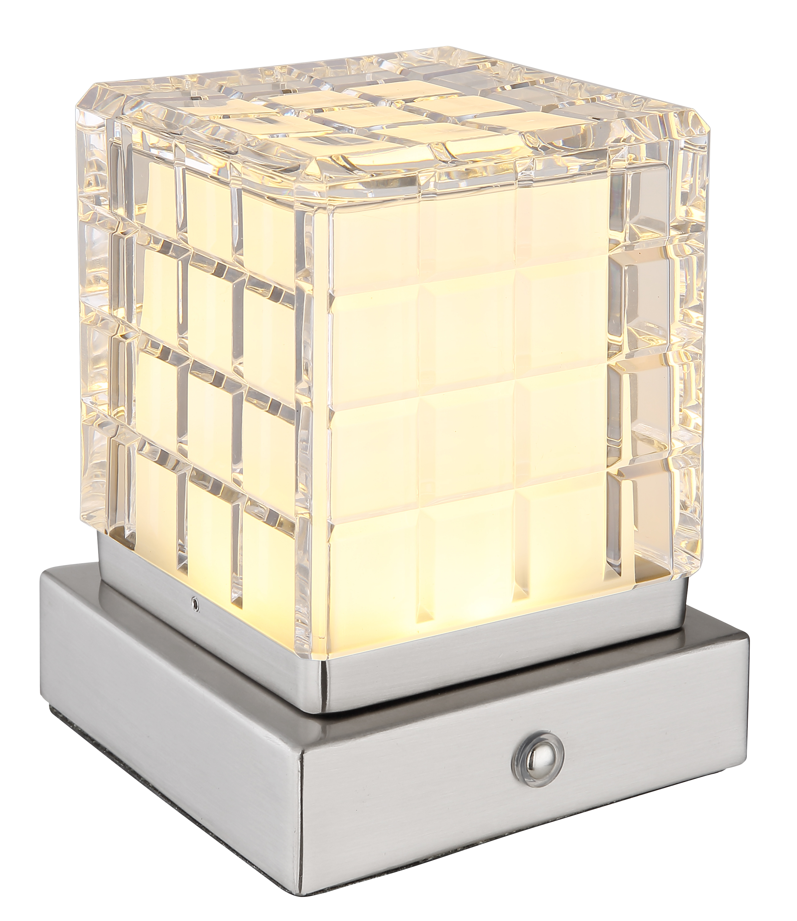 La lampada da tavolo LUNKI si presenta con un design elegante e materiali di alta qualità. Con un metallo nichel opaco e un vetro acrilico trasparente satinato, attira l'attenzione in qualsiasi stanza. Il cavo in PVC bianco e l'interruttore touch on/off consentono un facile utilizzo, mentre il dimmer touch continuo consente la regolazione individuale della luminosità. I colori dell'apparecchio possono essere fissati e può anche essere montato a parete, il che offre ulteriori usi. Una batteria (CR18650 1800mAh 3.7V) fornisce un'autonomia di 6-8 ore e si ricarica tramite il cavo USB incluso. Il potente LED da 2,5 W offre un'uscita di 206 lm e può regolare la temperatura del colore tra 2700K, 6500K e 4000K. Un adattatore deve essere acquistato separatamente.