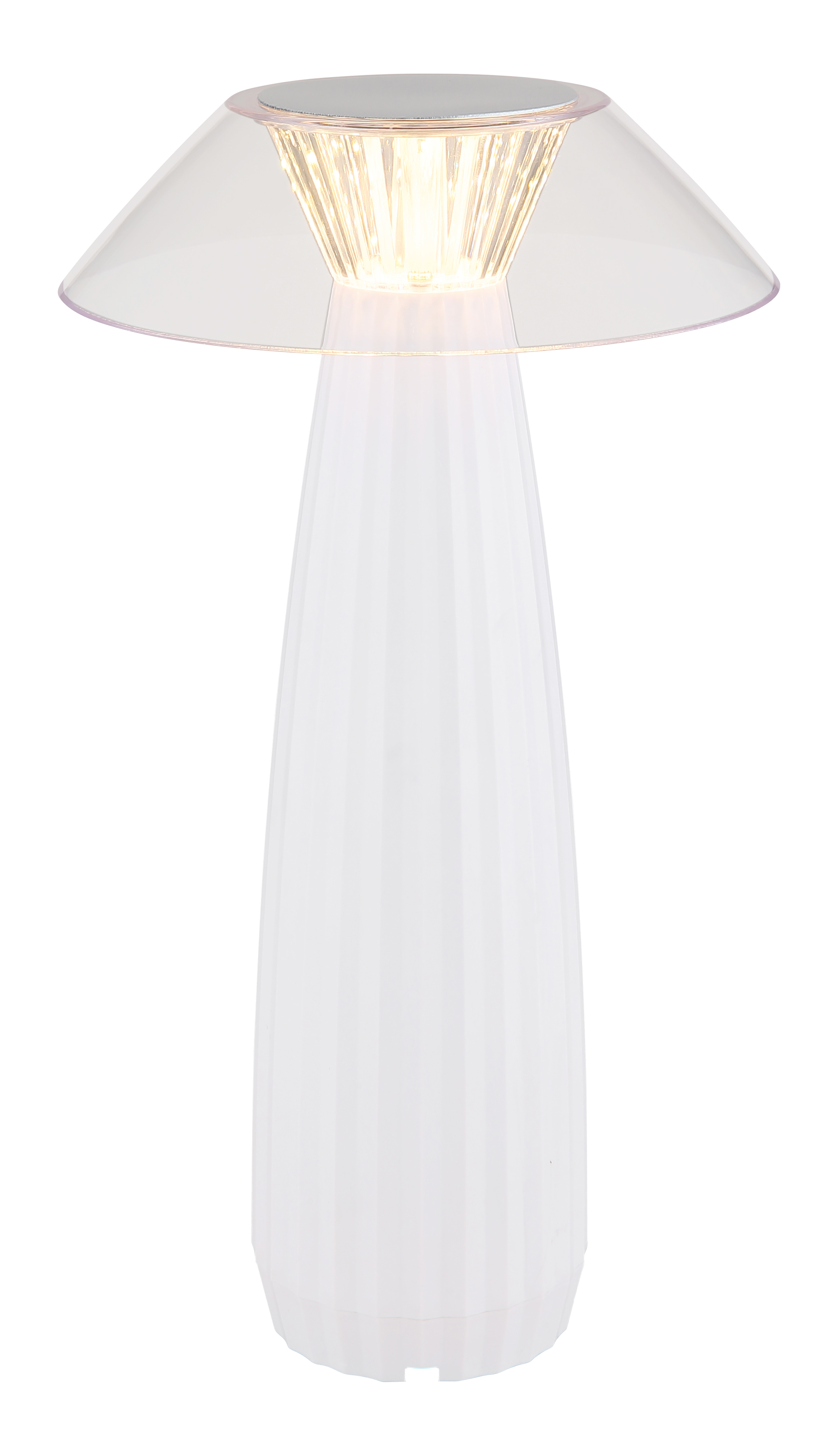 La moderna lampada da tavolo ILLUMI in bianco opaco e plastica trasparente convince per il suo design elegante. Con il cavo in PVC bianco e il pratico interruttore on/off touch, l'illuminazione può essere controllata senza sforzo. La lampada da tavolo è dimmerabile e dispone di un dimmer touch continuo che consente la regolazione individuale della luminosità. La batteria (CR18650 1200mAh 3.7V) offre un'autonomia fino a 6 ore e impiega circa 4 ore per caricarsi. La luce non può essere utilizzata durante la ricarica. L'apparecchio ha un LED da 1W con una potenza di 80lm e un colore della luce bianco caldo di 3000K. È incluso un cavo USB, un adattatore deve essere acquistato separatamente. Questa lampada da tavolo è l'aggiunta perfetta a un interno moderno.