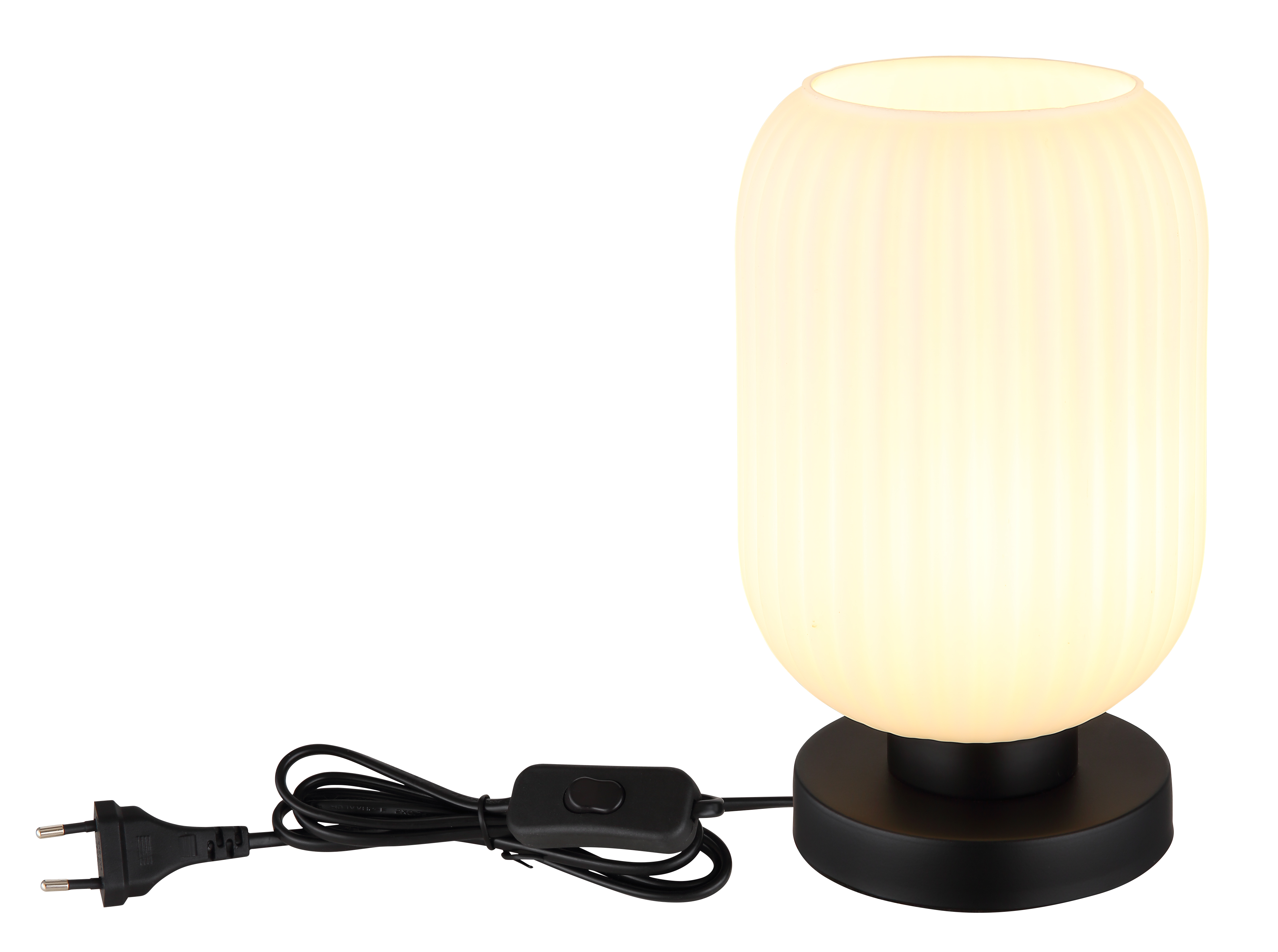 La lampada da tavolo NORMY combina sapientemente il design moderno con un tocco di fascino vintage. Il suo vetro rotondo a bulbo con eleganti scanalature lo rende un vero e proprio colpo d'occhio in qualsiasi stanza. Il corpo in metallo nero opaco conferisce alla lampada da tavolo NORMY stabilità e un aspetto elegante. Il paralume è realizzato in vetro opalino, che fornisce un'illuminazione diffusa e soffusa. Il pratico funzionamento è reso possibile dall'interruttore a bilanciere sul cavo, che consente di accendere e spegnere comodamente la luce. Con un diametro di 140 mm, la lampada da tavolo troverà spazio sufficiente su qualsiasi tavolo o tavolino. Crea un'atmosfera accogliente nella tua casa con la lampada da tavolo NORMY. Che si tratti del soggiorno, della camera da letto o del corridoio, crea accenti di stile e dona a ogni stanza un tocco unico. Lasciatevi ispirare dalla combinazione di design moderno e stile vintage e portate un vero e proprio highlight nella vostra casa con la lampada da tavolo NORMY.