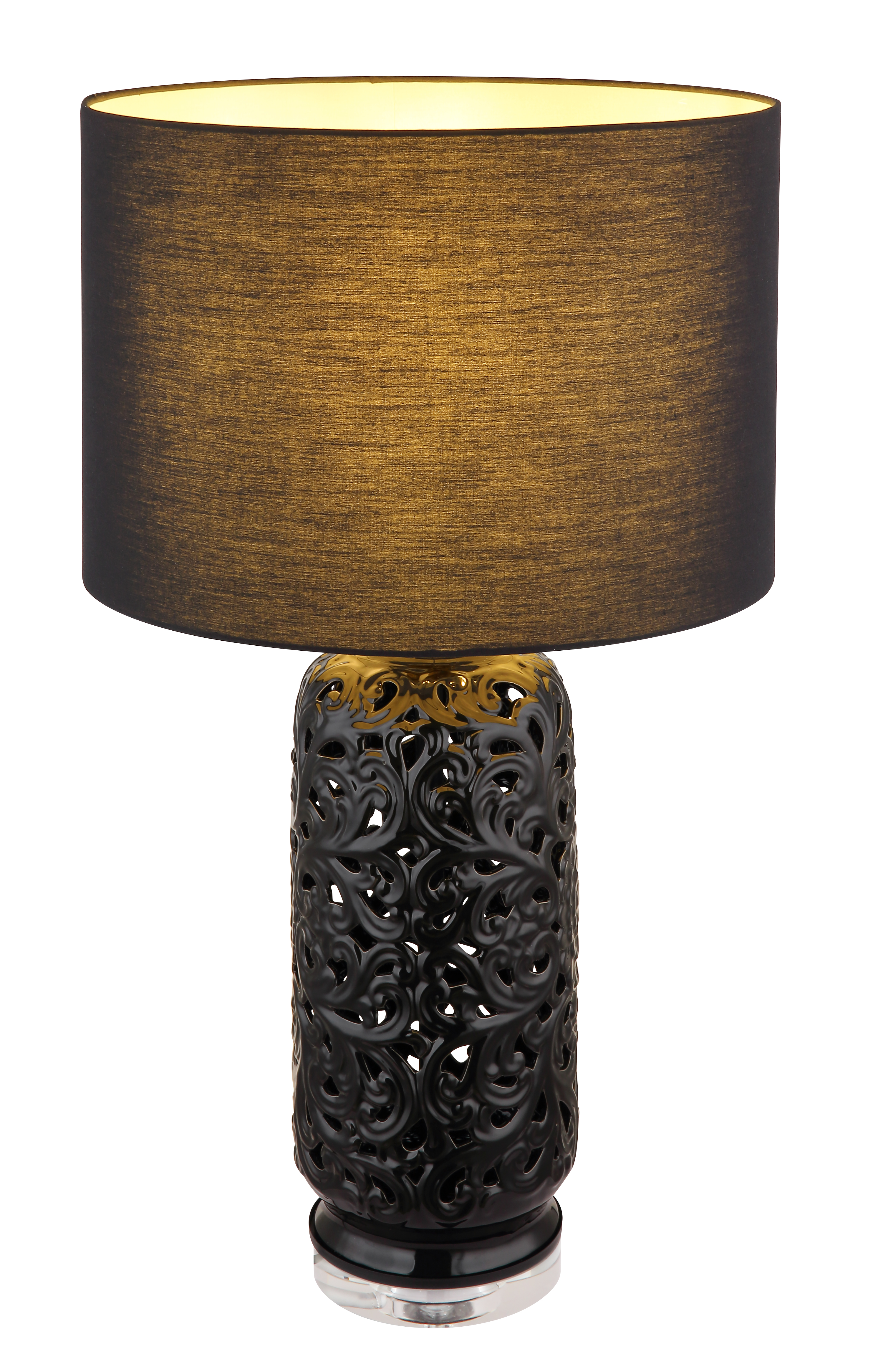 La lampada da tavolo in ceramica nera con base rotonda testurizzata è un accessorio elegante e moderno per la tua casa. Il corpo in ceramica in nero opaco conferisce alla lampada un aspetto elegante, mentre il paralume rotondo in tessuto nero assicura una piacevole distribuzione della luce. Con un diametro di 400 mm e una potenza di 40W, questa lampada da tavolo è ideale per l'uso su una credenza, un comodino o una scrivania. L'elegante paralume in acrilico trasparente e gli elementi in metallo cromato conferiscono alla lampada un aspetto moderno ed elegante. Un pratico interruttore a bilanciere sul cavo facilita l'utilizzo della lampada. La lampada da tavolo è dotata di attacco E27, in cui è possibile inserire sorgenti luminose disponibili in commercio. Questa lampada da tavolo non è solo un elemento di illuminazione funzionale, ma anche un accessorio decorativo che aggiungerà un tocco speciale a qualsiasi stanza.