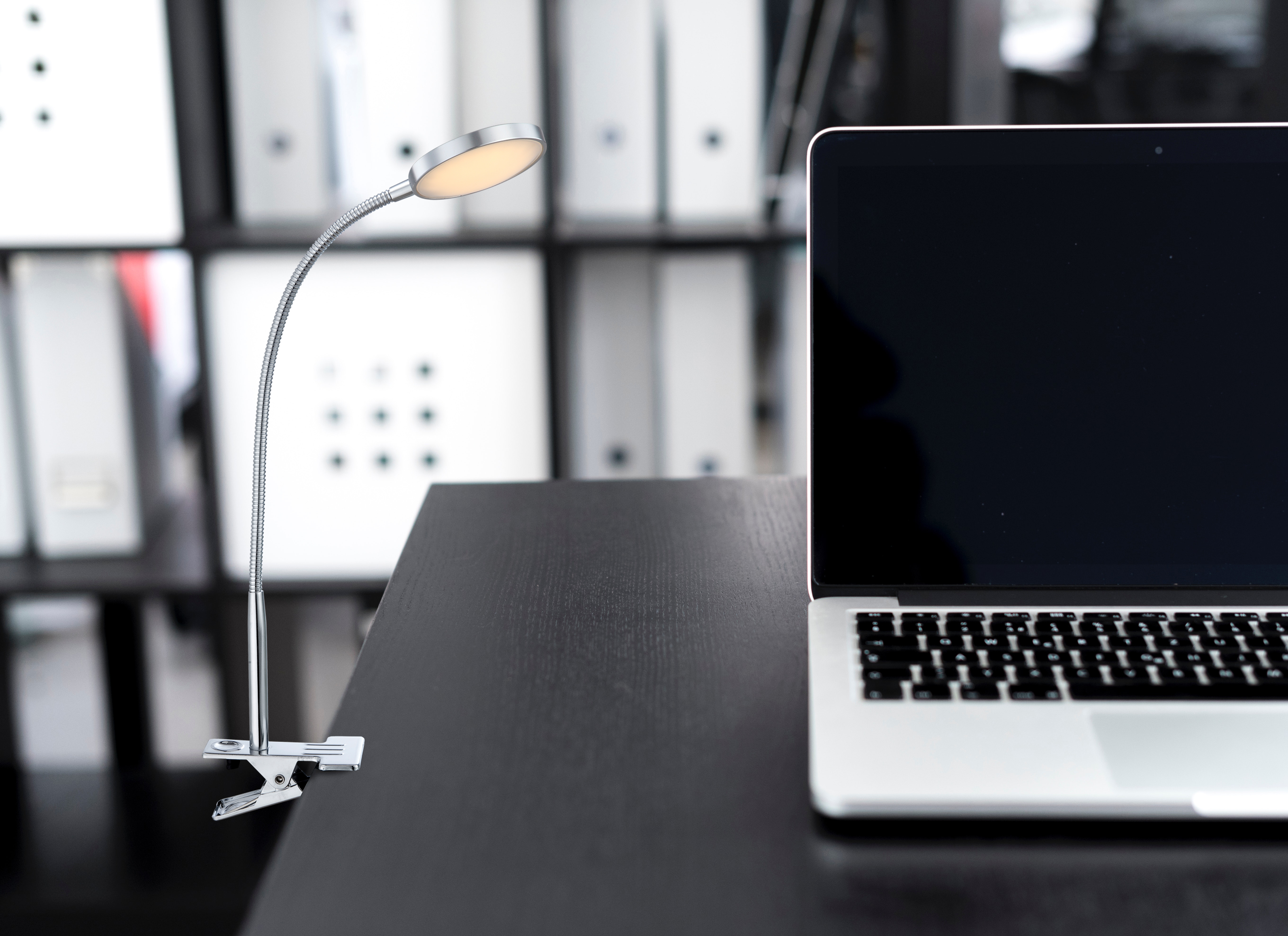 Chiunque ami risparmiare spazio e continuare a illuminare la propria scrivania o il proprio posto di lavoro in modo luminoso ed efficace, si consiglia di utilizzare questo faretto con morsetto a LED. Con la base a morsetto, questo modello può essere fissato al piano del tavolo in pochi semplici passi e, se necessario, rimosso. Grazie al design moderno e all'alluminio lucido, questa lampada è il fiore all'occhiello di ogni stanza.