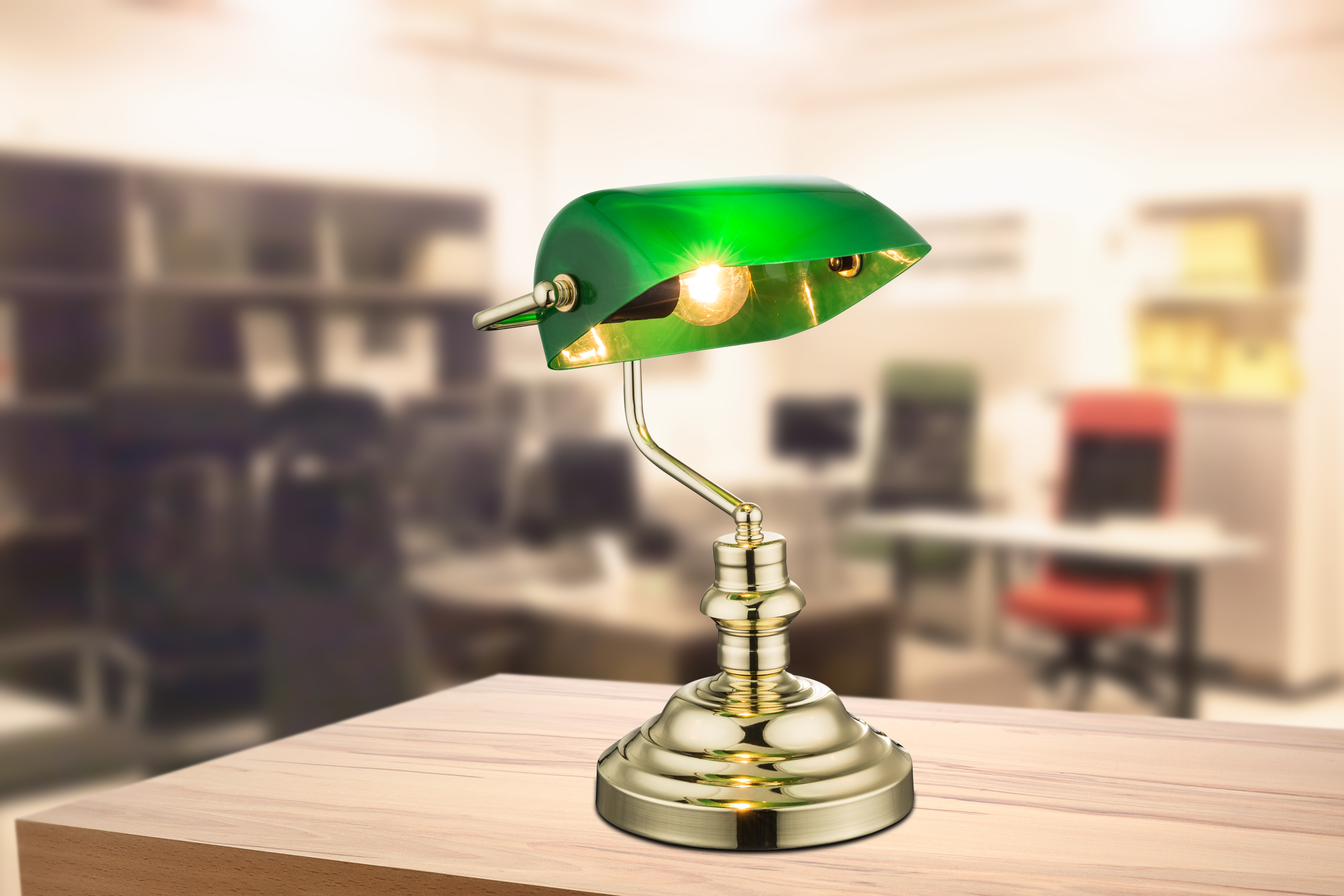 Questa lampada da tavolo in stile classico banchiere combina una seria professionalità con un comfort accogliente. Ma una cosa è certa, questo modello in ottone è garantito per esaltare l'atmosfera di ogni casa. È anche efficiente dal punto di vista energetico, in quanto può essere utilizzato con le lampade a LED.