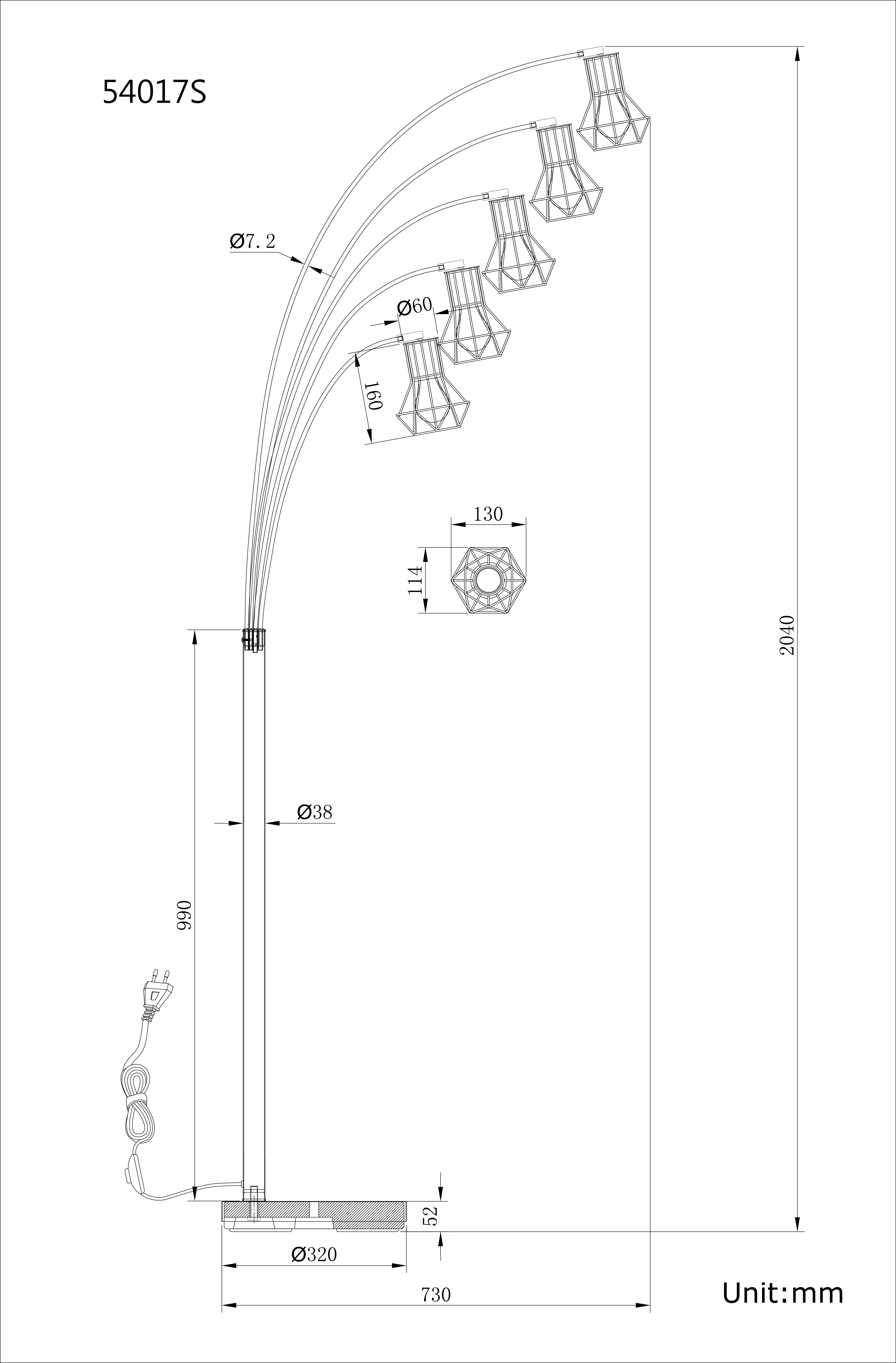 Questa moderna piantana della serie Priska ispira con il suo bel design e diventa il centro di ogni stanza. Da una base nera opaca, si alza un'asta con altre cinque braccia, ognuna delle quali ha una presa E27. Questo attacco E27 può essere equipaggiato con una lampadina di propria scelta, fino a una potenza massima di 40 watt, ed è circondato da una formosa rete metallica nera a forma di cilindro, dando alla lampada il giusto tocco.