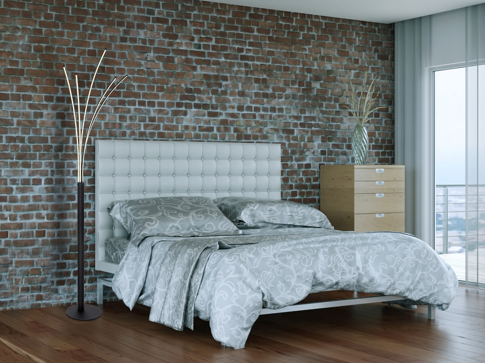 Questa grande lampada da terra ispira per il design e le funzioni moderne. Da una base rotonda parte un'asta di metallo nero opaco, da cui sporgono cinque pannelli LED fino a 187 cm di altezza. Tramite il telecomando in dotazione, è possibile regolare la luminosità di questo apparecchio Smart Light da 3000 Kelvin bianco caldo a 6000 Kelvin bianco freddo e orientarlo in diverse direzioni. Il punto forte, tuttavia, è la funzione Smart Home: l'apparecchio è compatibile con Smart Home e Alexa e può essere gestito tramite input vocale. Questa lampada intelligente può essere facilmente gestita tramite l'App Tuya Smart (Android TM/IOS). Il controllo vocale è semplice con Amazon Echo Tm e Google Home.