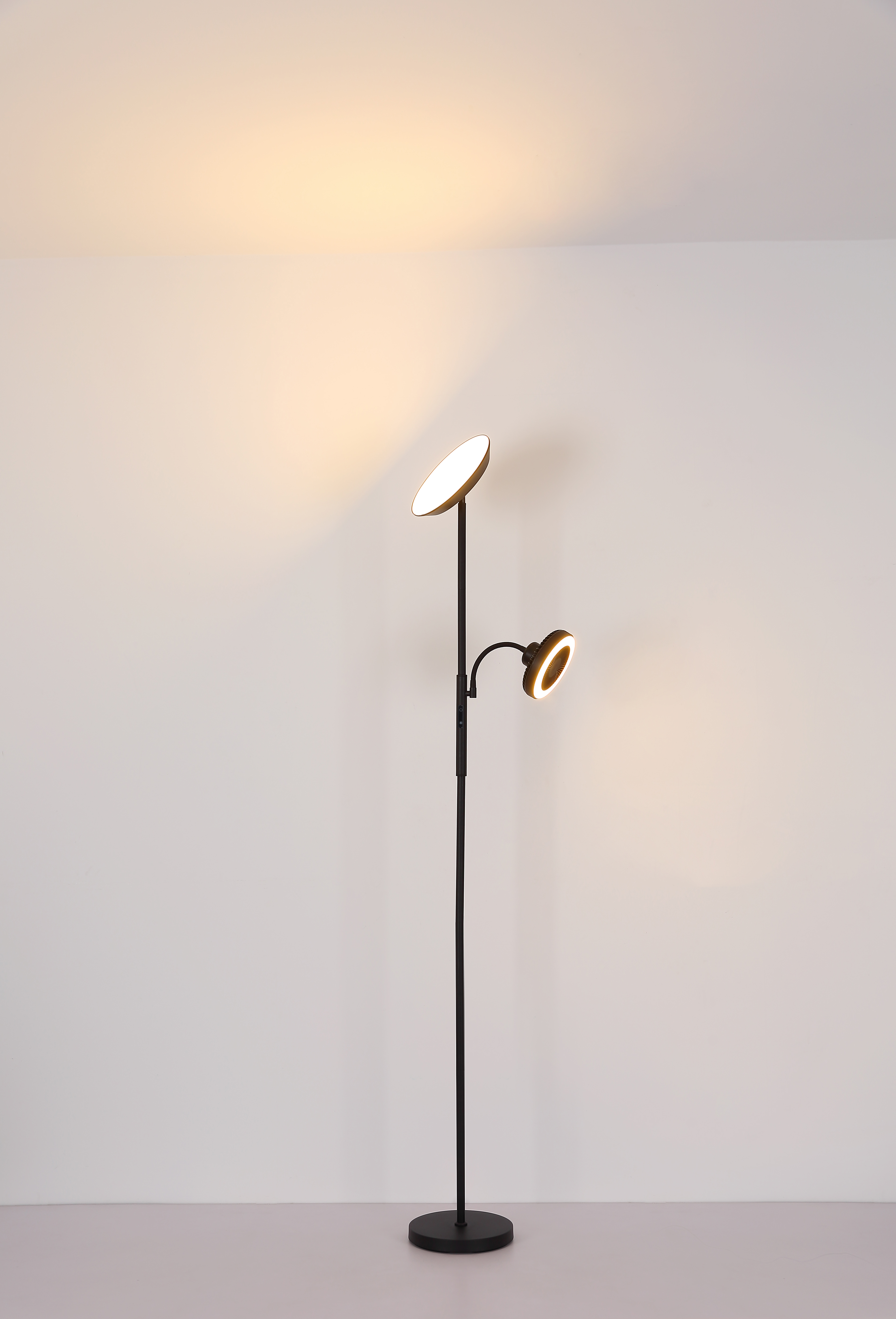 L'uplight rotondo DAVYD è un elemento di illuminazione versatile e pratico. Il corpo è realizzato in metallo nero opaco e cromato, conferendo alla lampada un aspetto moderno ed elegante. Il paralume è realizzato in plastica nera opaca e plastica opalina. Particolarmente pratico è il proiettore mobile, che consente di regolare la luce individualmente. Inoltre, questa lampada è dotata di una ventola integrata che garantisce una piacevole circolazione dell'aria. Con un diametro di 337 mm e una larghezza di 250 mm, il DAVYD è perfetto per ambienti di piccole e medie dimensioni. L'uplight è dimmerabile e dispone di un dimmer touch continuo con il quale la luminosità può essere regolata facilmente e comodamente. Il colore desiderato può anche essere fissato. Con un'emissione di lumen di 850 e un CCT da 2700K a 6500K, il DAVYD fornisce un'illuminazione regolabile individualmente. Con l'uplight DAVYD, non solo si ottiene un'illuminazione di alta qualità, ma anche una pratica combinazione di sorgente luminosa e ventola.