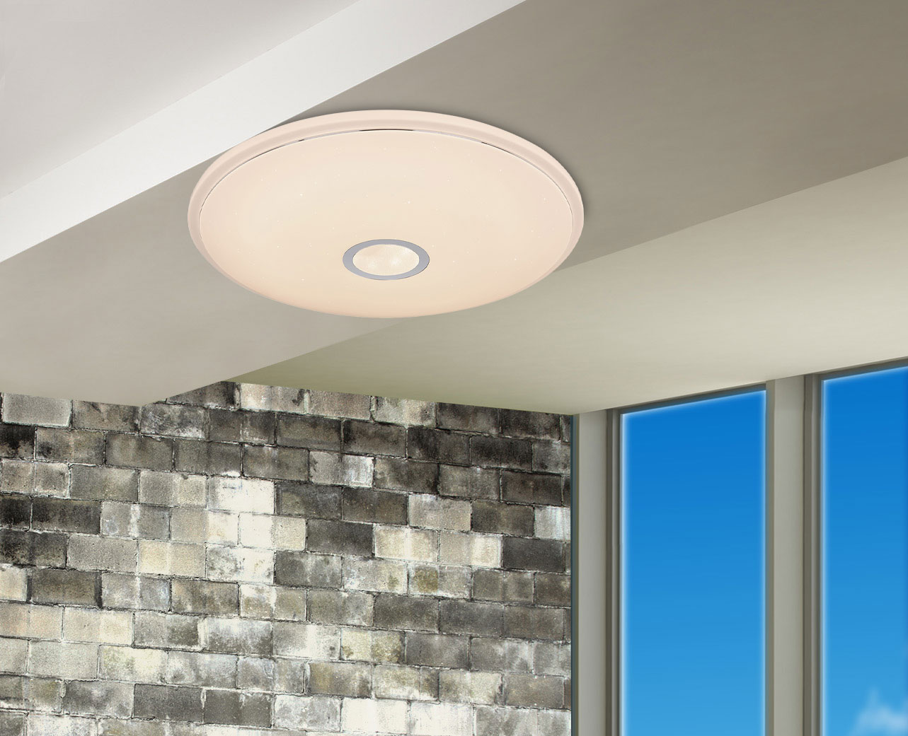 Questa plafoniera rotonda Connor (Ø50cm) si distingue per la sua funzionalità. Realizzata in plastica con ottica Sparkle, questa lampada da soffitto dimmerabile ha un'emissione luminosa massima di 3000 lm (5W LED). Questo può essere controllato e fissato in diversi livelli (colori) con il telecomando incluso (dal bianco caldo 3000K al bianco freddo 6000K). Questa luce interna può essere utilizzata nella camera da letto, nella sala d'ingresso, nel soggiorno e nella sala da pranzo. È anche compatibile con Google Home e Alexa. Questa lampada Smartlight è facile da usare con Tuya Smart App (Android TM/IOS). Il controllo vocale è facilmente realizzabile con Amazon Echo Tm, Google Home, Apple (R) Home Kit TM.