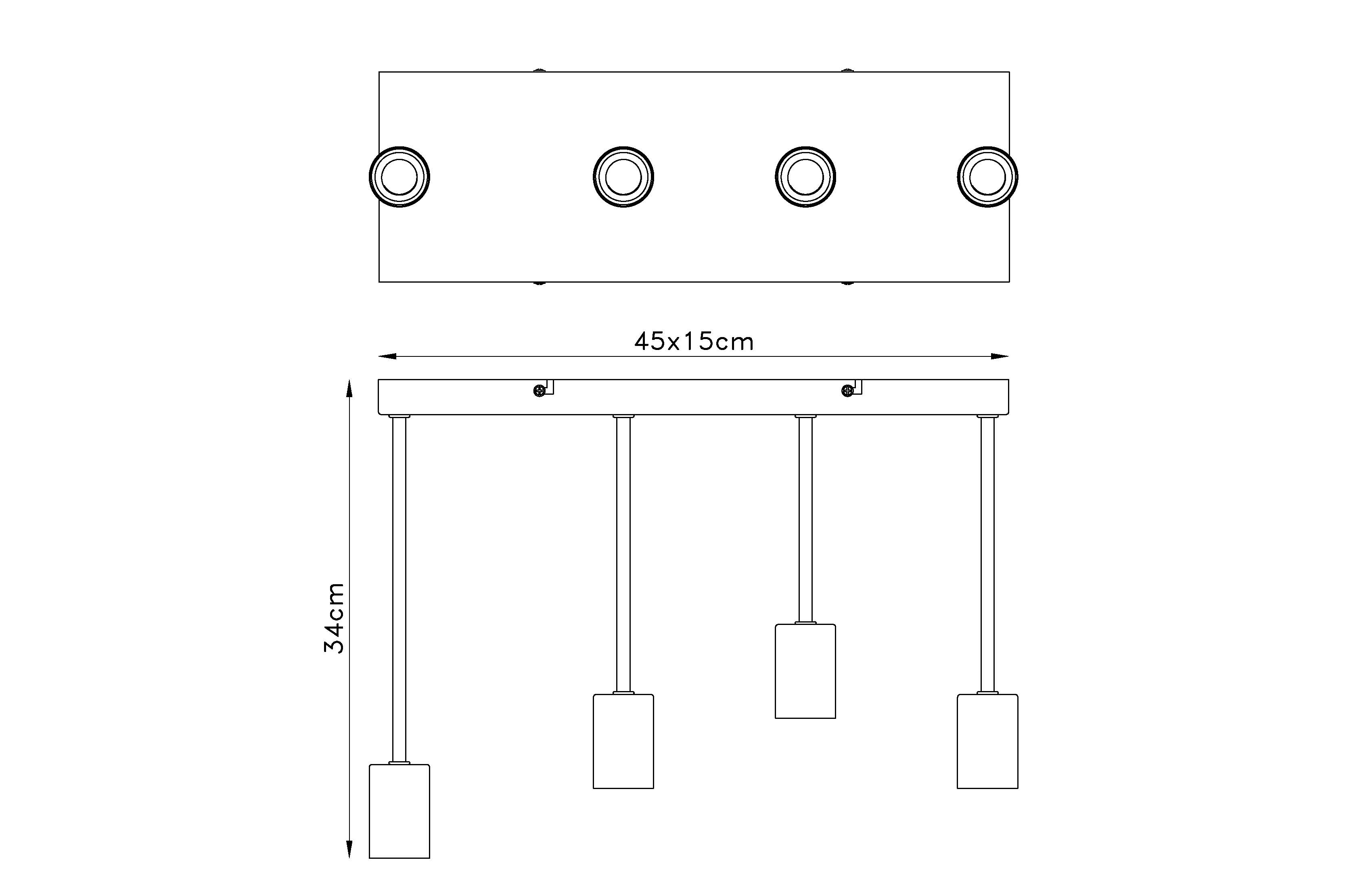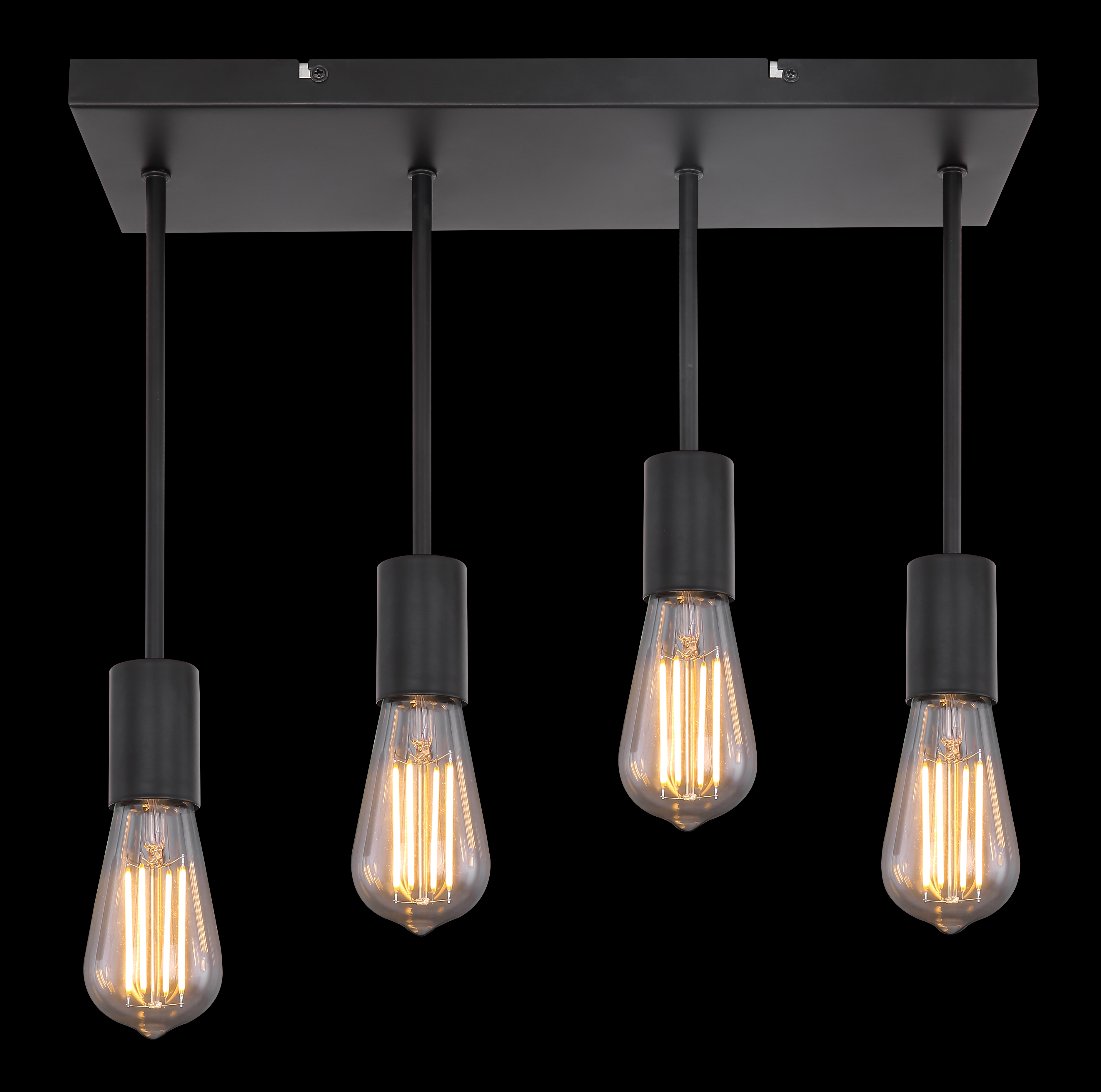 Un vero EyeCatcher illumina ogni zona giorno. La plafoniera a quattro luci, lunga 45 cm, offre un'atmosfera accogliente in ogni casa. Con il suo moderno design vintage, è molto trendy e può essere integrato in molti stili di arredamento contemporaneo. È possibile equipaggiare la lampada con quattro lampadine con l'attacco E27 max. 60W. Grazie alla sua longevità e al risparmio energetico, raccomandiamo le lampadine a LED. Potete abbellire ulteriormente ogni spazio abitativo con altri modelli di questa serie.