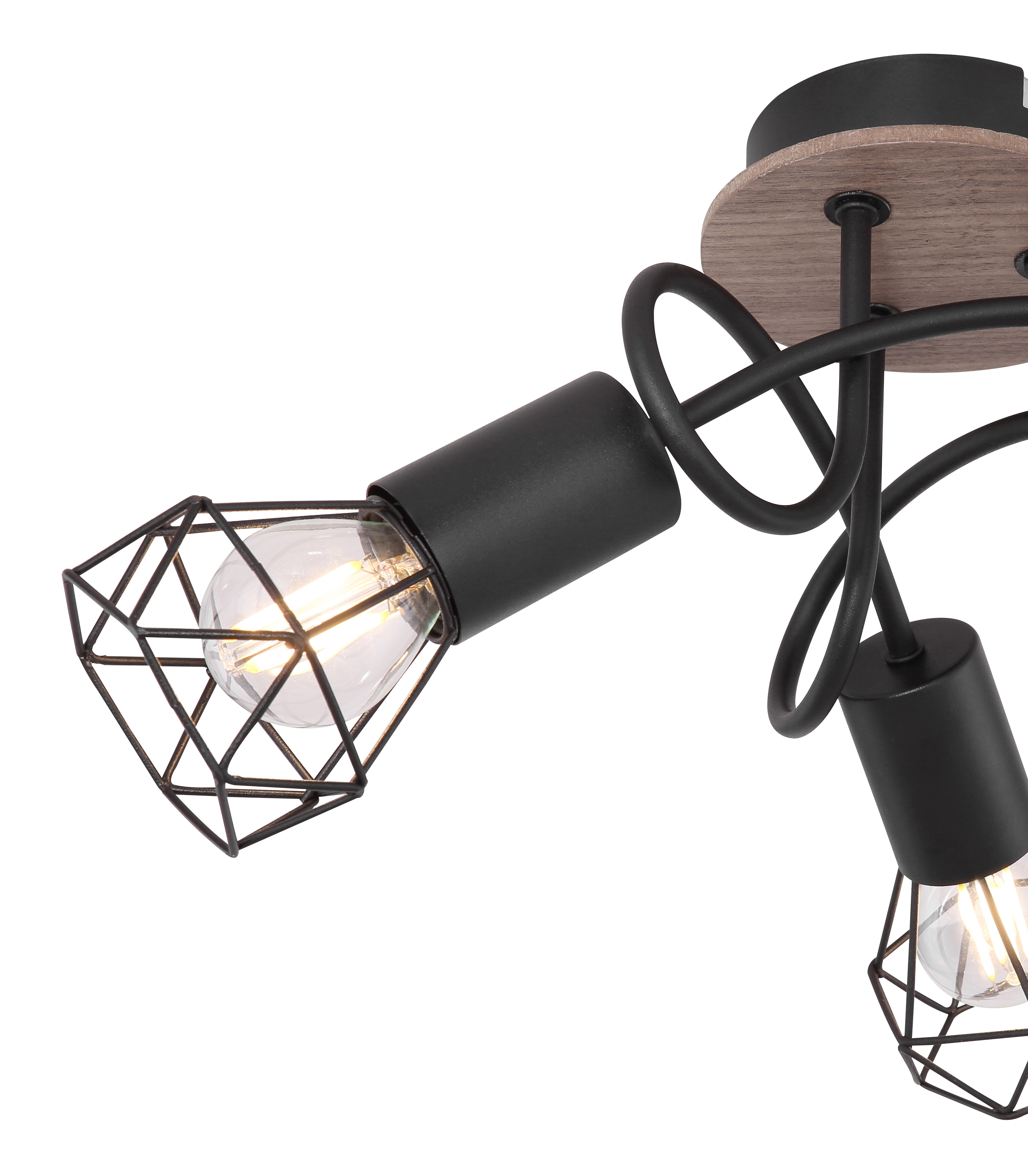 Questa plafoniera della serie Xara I (ø 38 cm) è una bella aggiunta ad ogni ambiente interno. Tre belle aste di metallo curvate sono fissate alla piastra rotonda di legno, alle cui estremità si trovano le prese E14 insieme ai paralumi in rete metallica, che si possono equipaggiare con lampadine abbinate di propria preferenza, dando la possibilità di determinare individualmente il colore della luce e la luminosità. Con ulteriori articoli della stessa serie, si può completare il quadro generale nelle proprie stanze e creare un'atmosfera elegante.