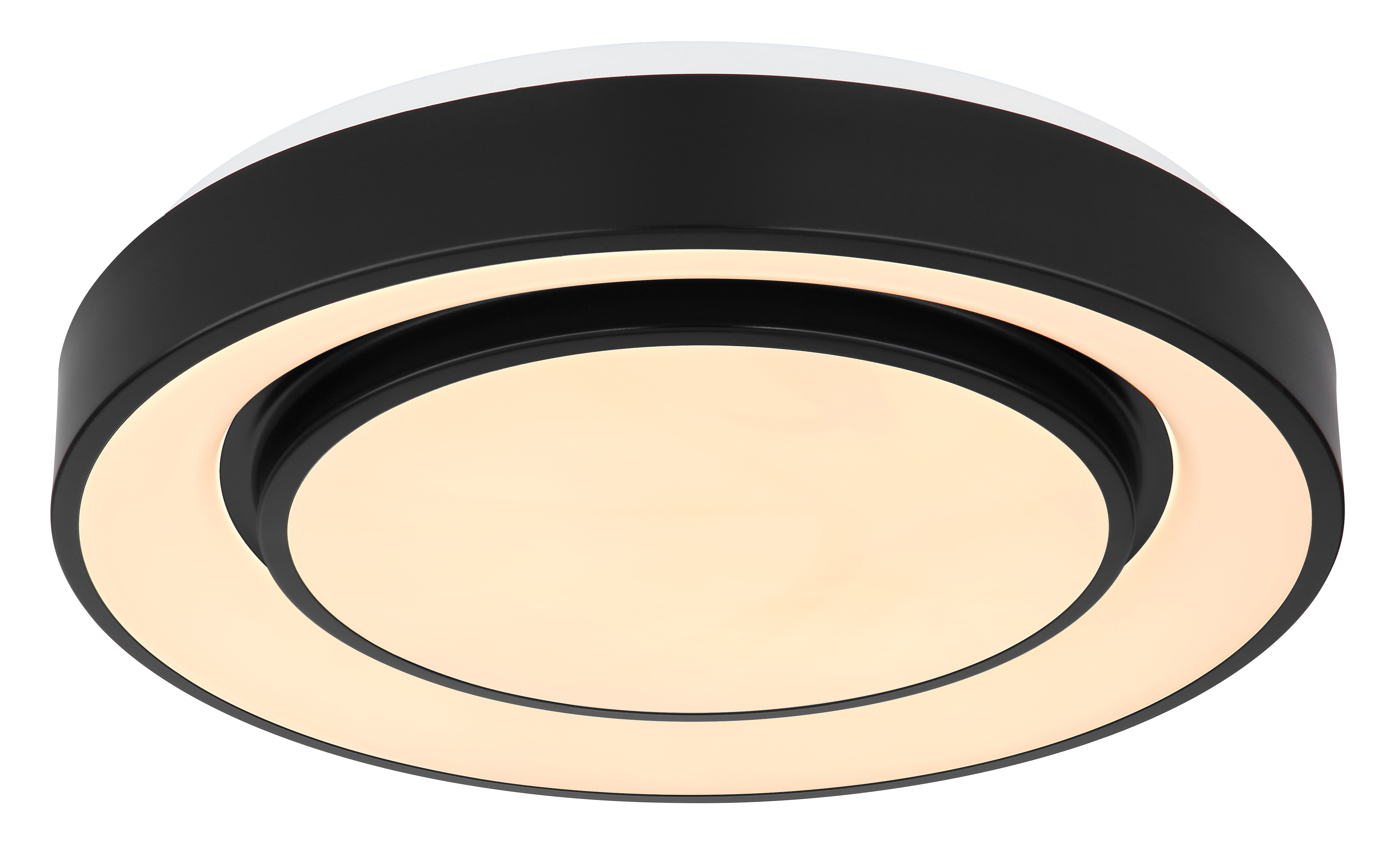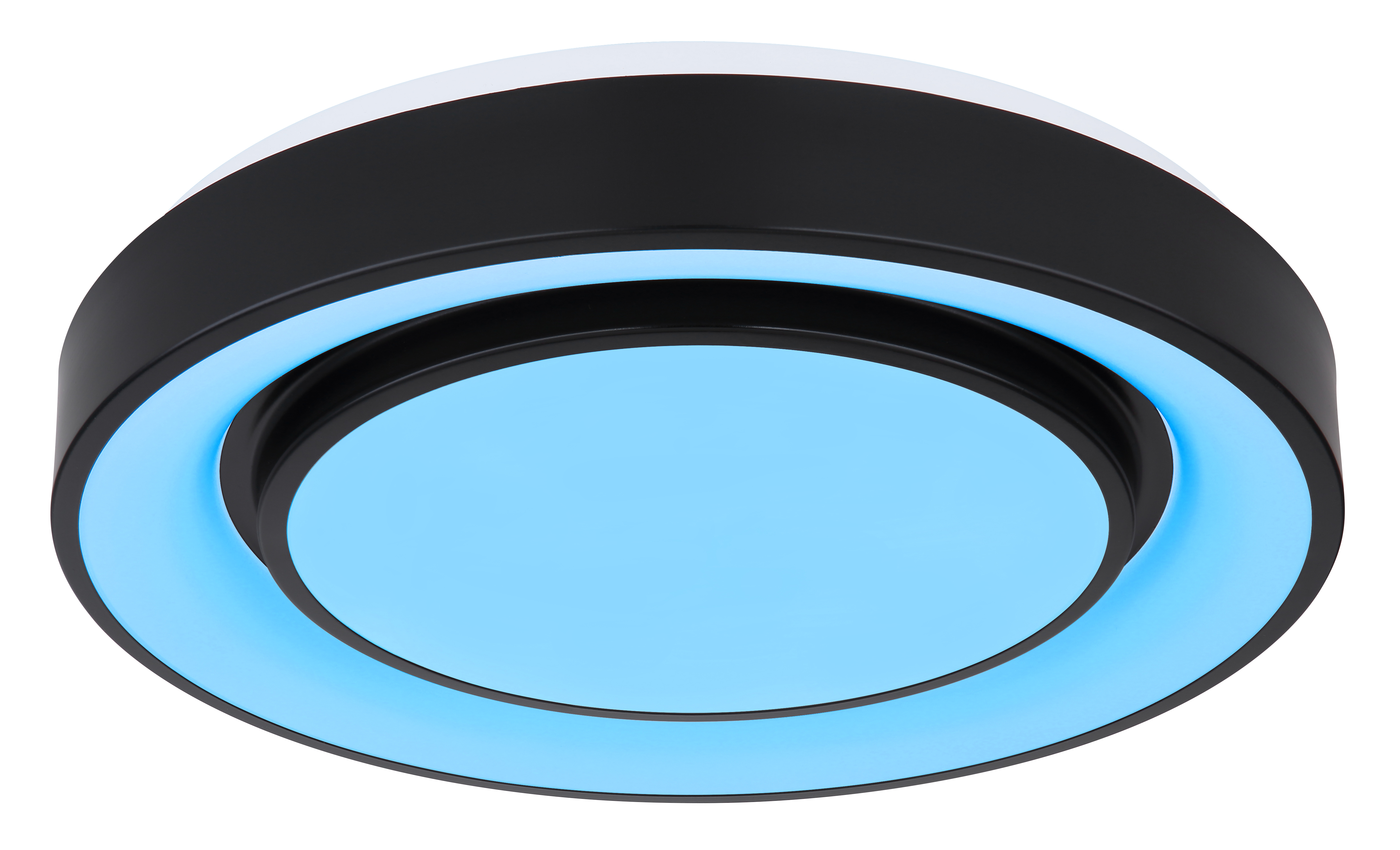 Questa plafoniera rotonda della serie Sully (ø 38 cm) è una meravigliosa aggiunta ad ogni ambiente interno. Consiste in un anello esterno e uno interno di metallo nero, le cui superfici interne sono dotate ciascuna di plastica opalina. Grazie ai LED inclusi, la plafoniera Sully fornisce 1500 lumen di luce forte. Con il telecomando incluso, è possibile non solo attenuare la plafoniera, ma anche regolare individualmente il colore della luce in diversi passi tra 3000 Kelvin (bianco caldo) e 6500 Kelvin (bianco freddo) e anche farla brillare in colori RGB. Per un'atmosfera unica, la funzione Rainbow Effect illumina la stanza con i colori dell'arcobaleno.