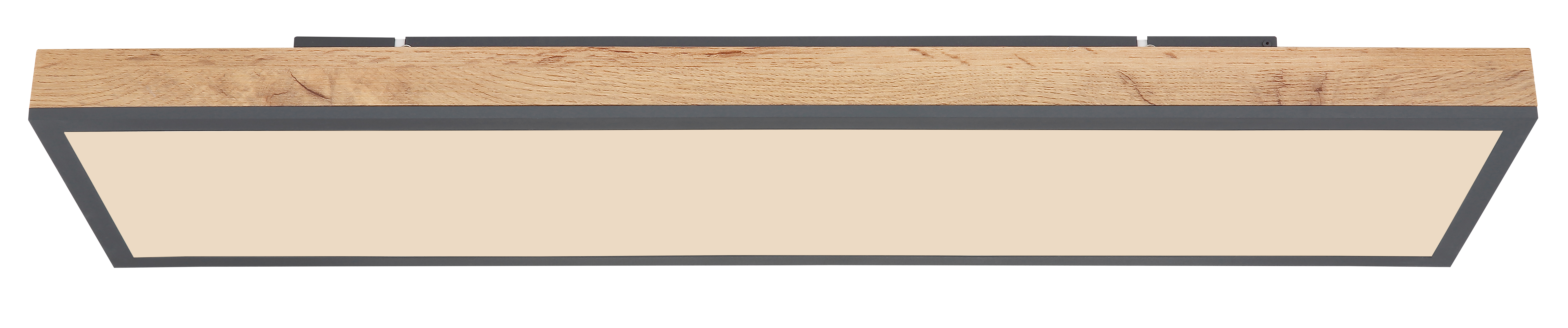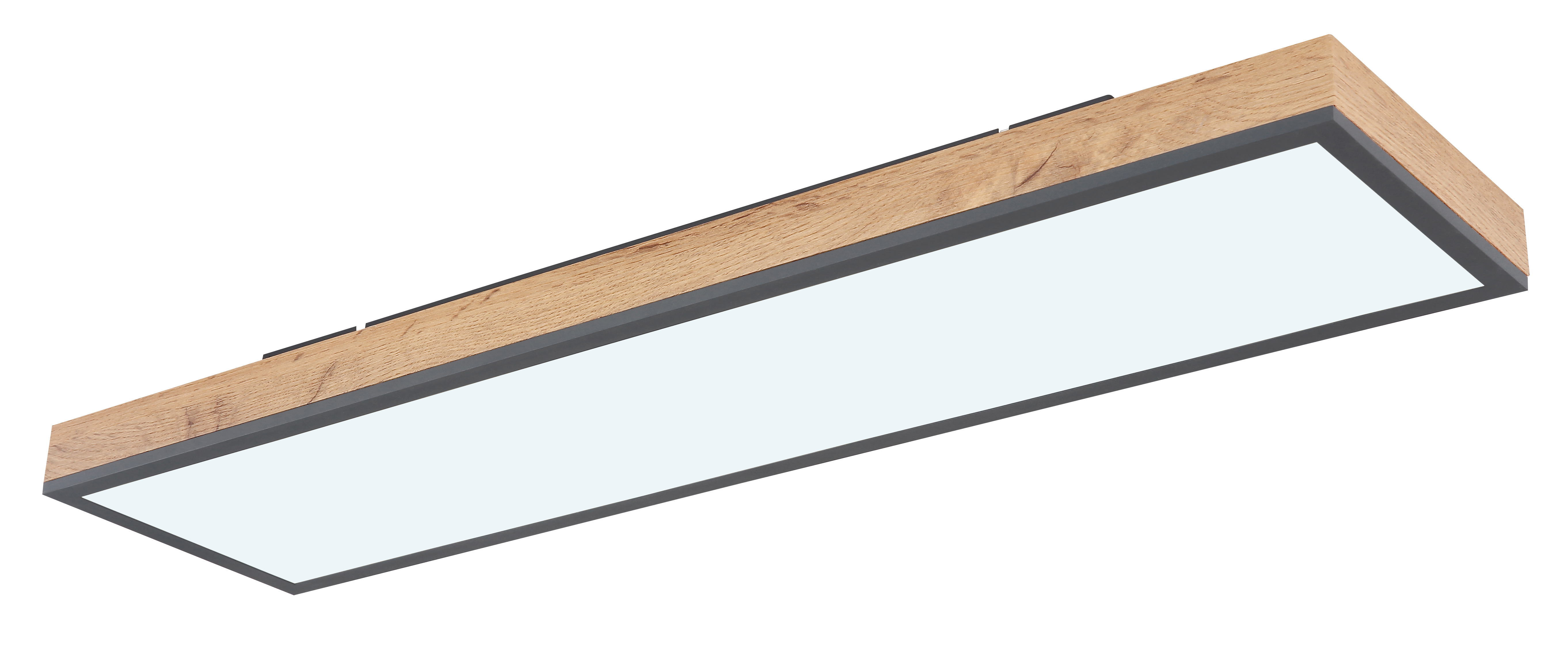 Questa plafoniera della serie Doro è una bella aggiunta ai propri interni. Consiste in un telaio rettangolare in MDF in look legno (80x20 cm), che è dotato di alluminio color grafite. La plafoniera ha incluso lampadine a LED, che sono coperte da acrilico opale. Questi forniscono 1500 lumen di luce forte. Con l'aiuto del telecomando in dotazione, è possibile non solo attenuare la plafoniera, ma anche regolare individualmente il colore della luce in diversi passi tra 2700 Kelvin (bianco caldo) e 6000 Kelvin (bianco freddo) e avere anche una funzione di luce notturna. Con altri modelli della stessa serie, è possibile impostare accenti di stile all'interno dell'ambiente e completare il quadro generale.