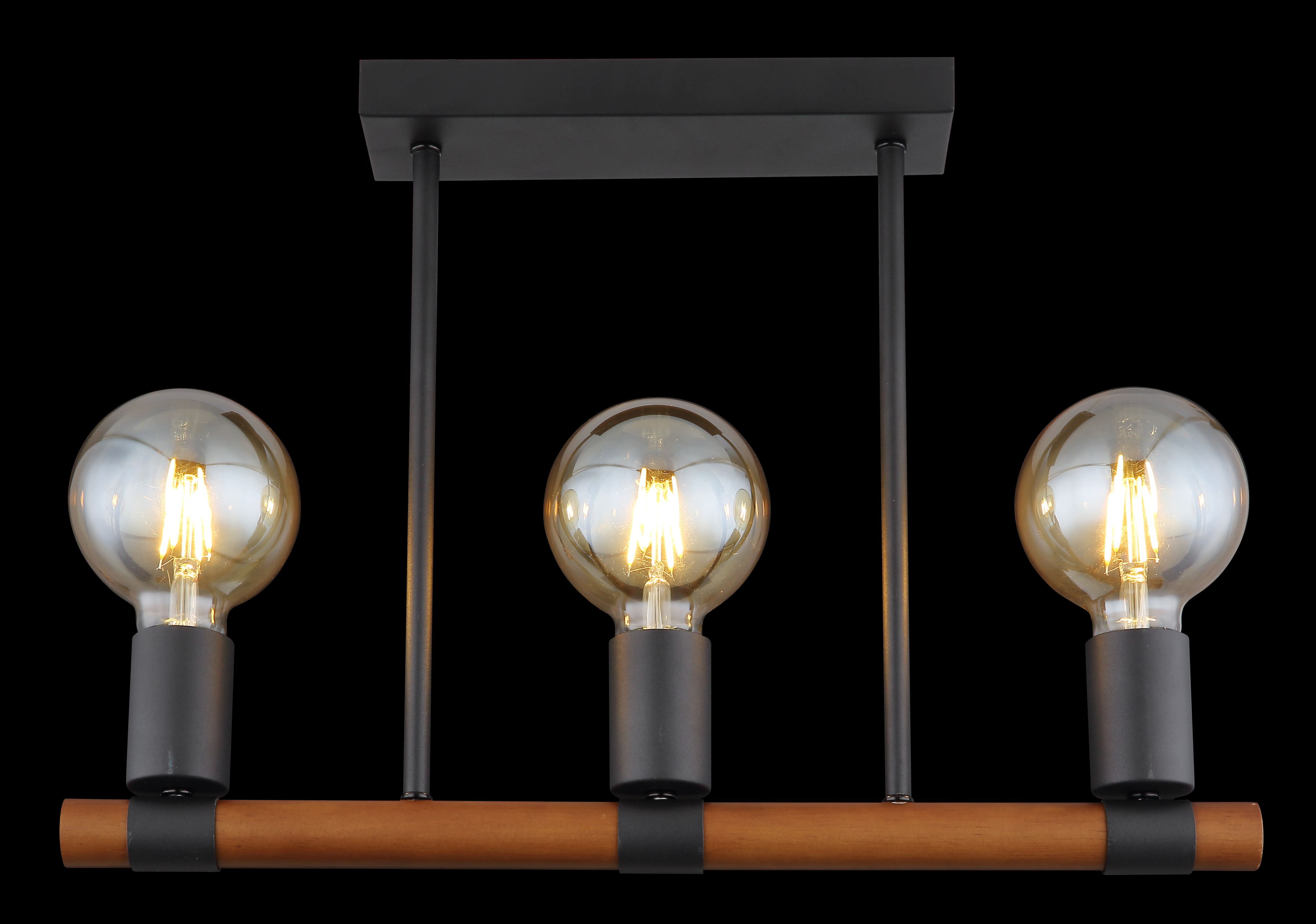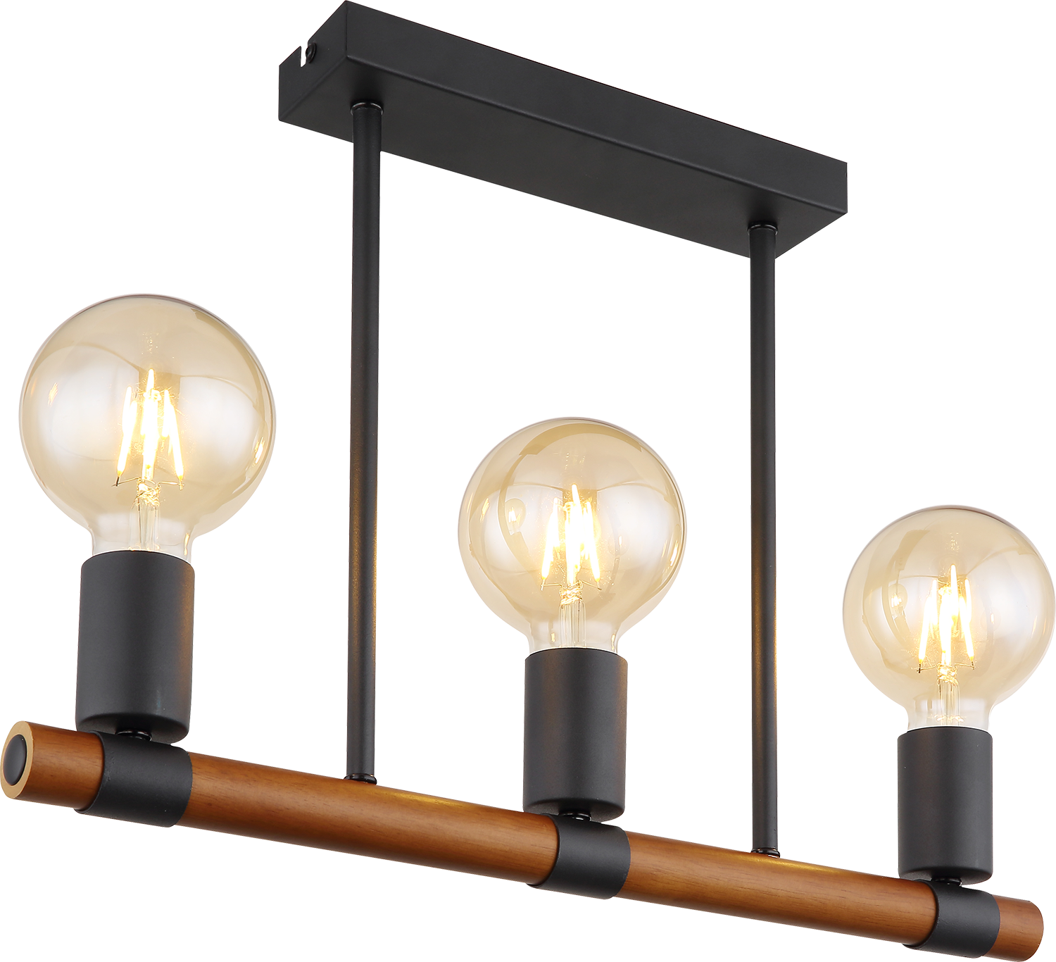 Questa plafoniera della serie Heinrich è una bella aggiunta ai propri interni. La plafoniera lunga 50 cm è composta da un'asta di legno marrone che è fissata a due aste di metallo nero opaco ed è dotata di tre prese E27. Si possono equipaggiare con lampadine abbinate di propria scelta, il che dà la possibilità di determinare individualmente il colore e la luminosità della luce. Utilizzando diversi modelli della stessa serie, si può creare un ambiente elegante nel proprio ambiente.