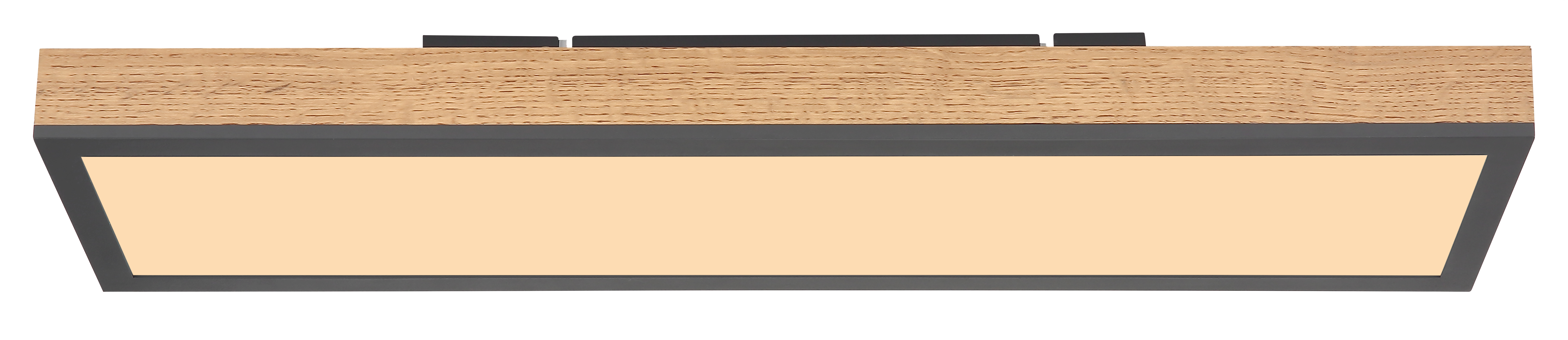 Questa bella plafoniera della serie Doro si distingue per il suo bel look in legno e la forma semplice. La plafoniera rettangolare lunga 60 cm ha una lampadina LED integrata che emette una piacevole luce bianca calda (3000 Kelvin). Con la combinazione di colori della grafite e l'ottica del legno, fa un bel quadro d'insieme.