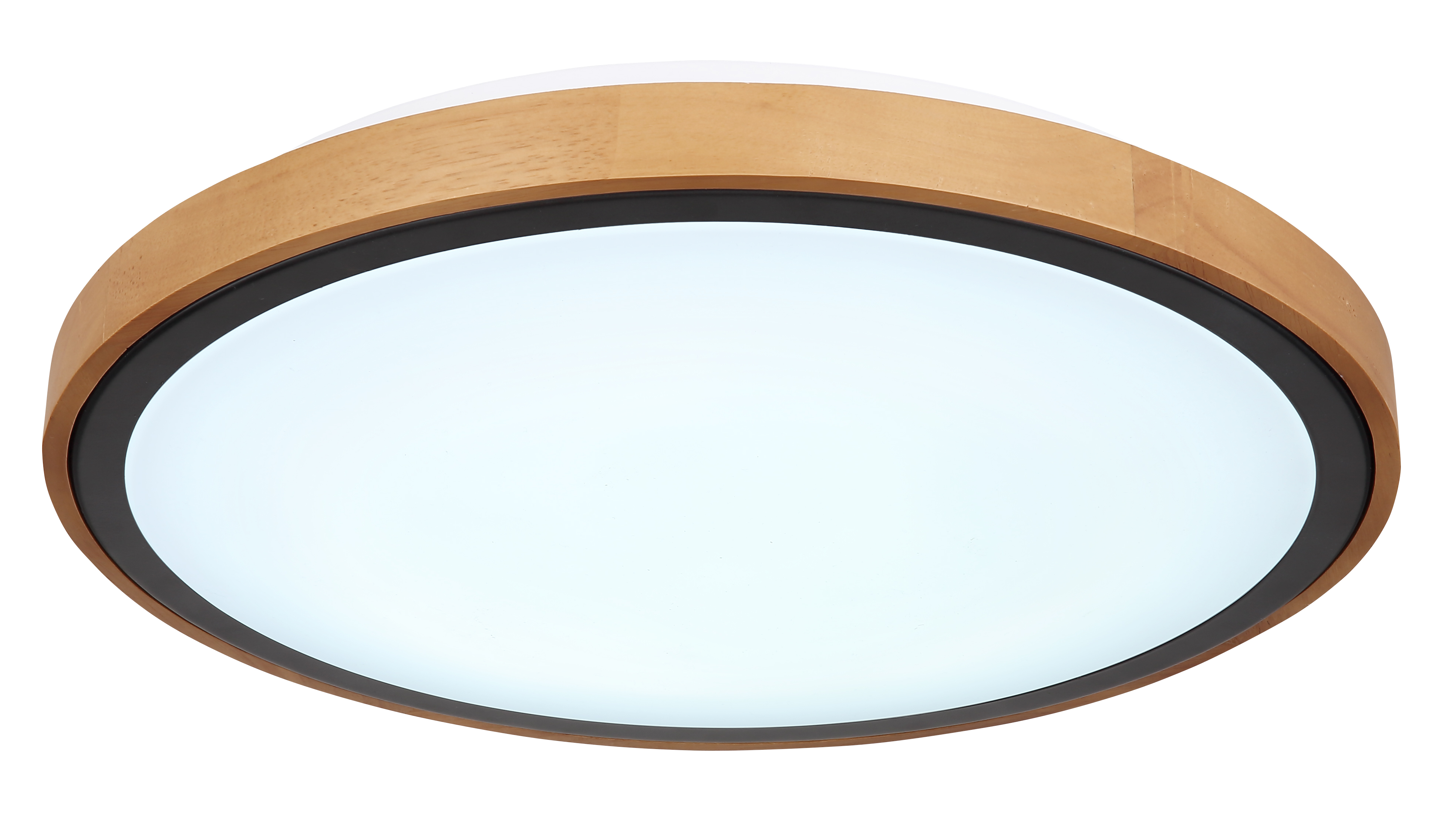 Questa plafoniera rotonda ispira per il suo grande design. In una cornice di legno con un diametro di 44 cm si trova un pannello LED con una cornice metallica aggiuntiva. Può essere regolata e fissata nei livelli di luce 3000 Kelvin bianco caldo, 4500 Kelvin neutro e 6000 Kelvin bianco freddo.
