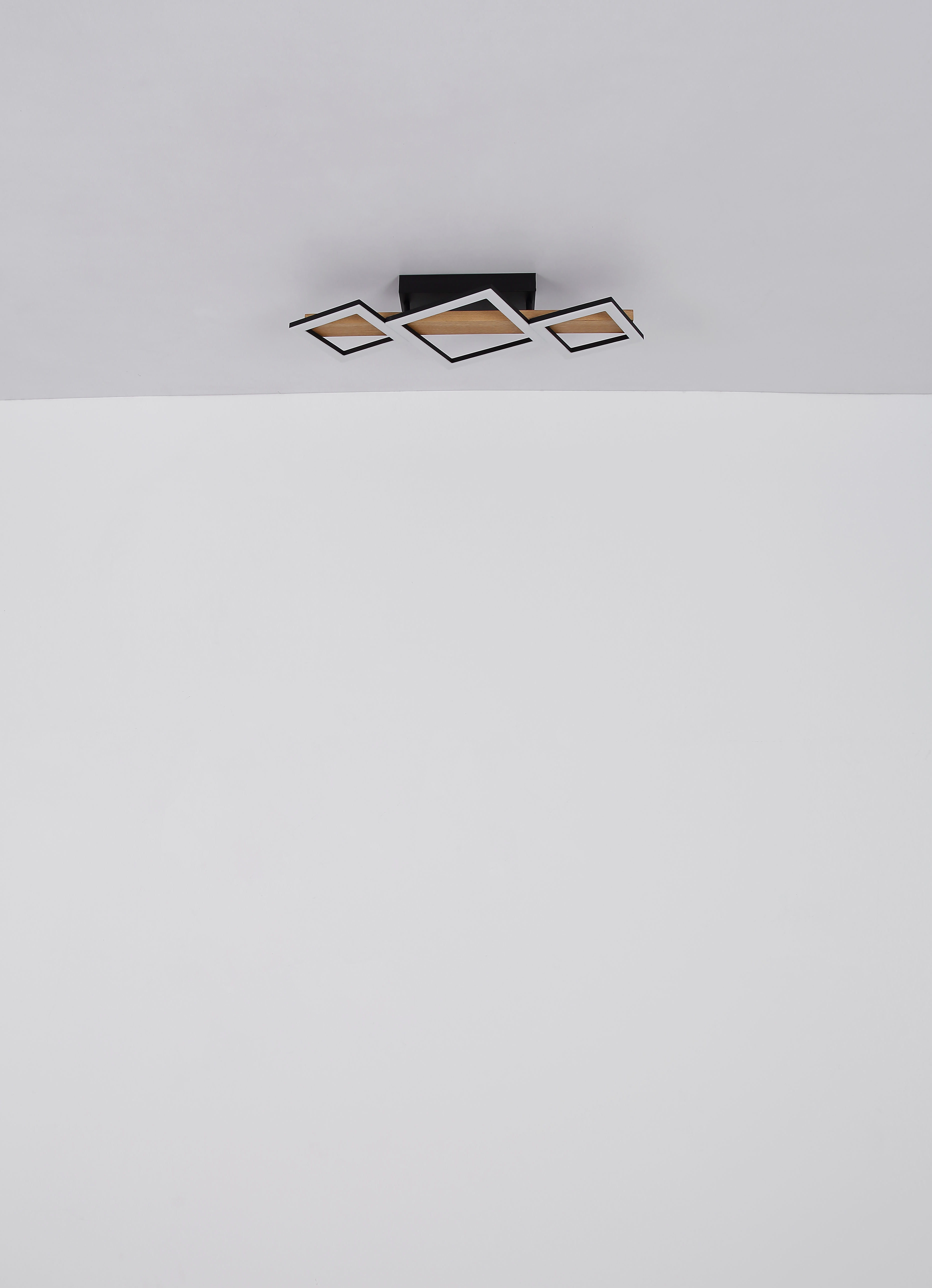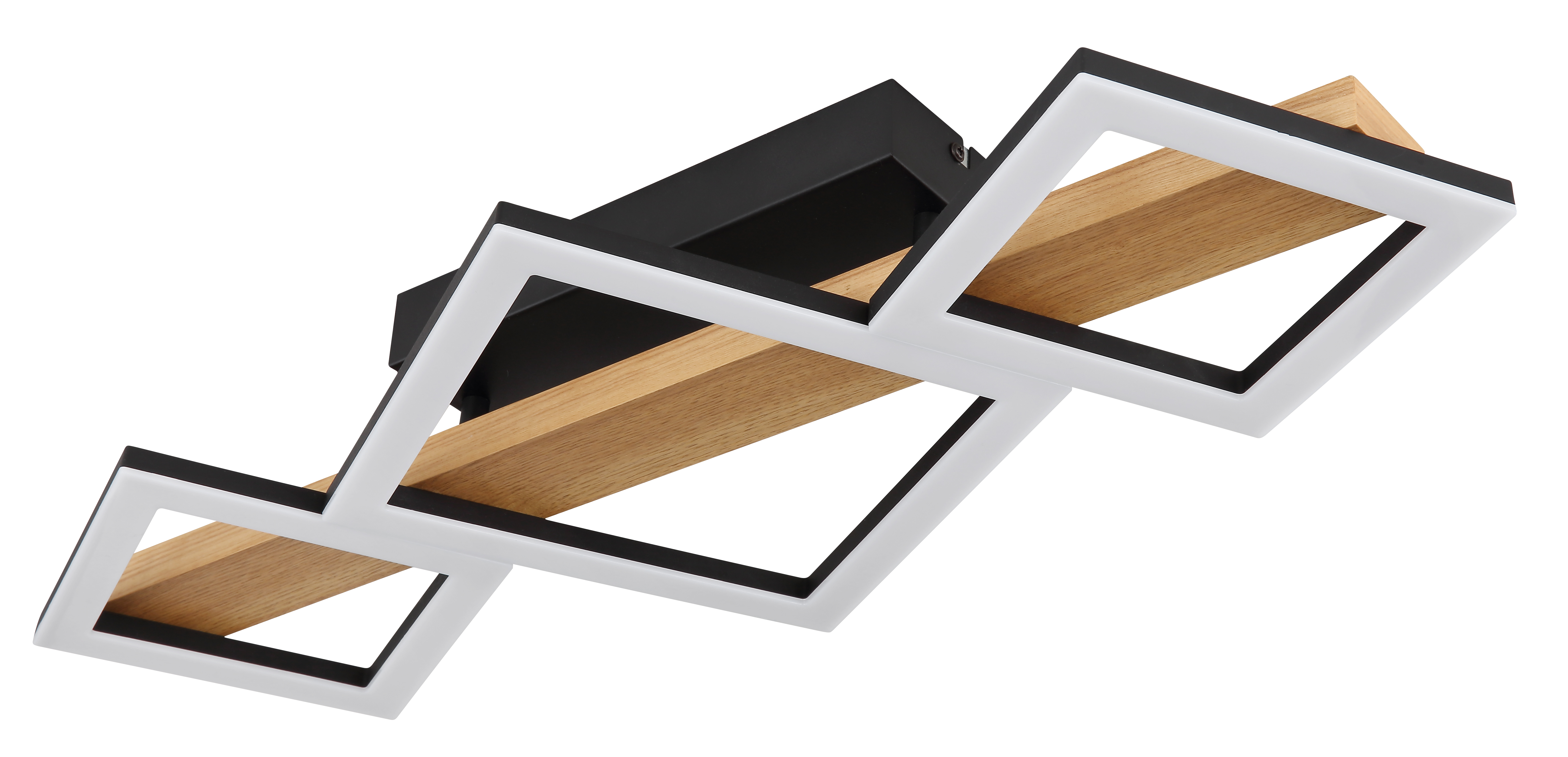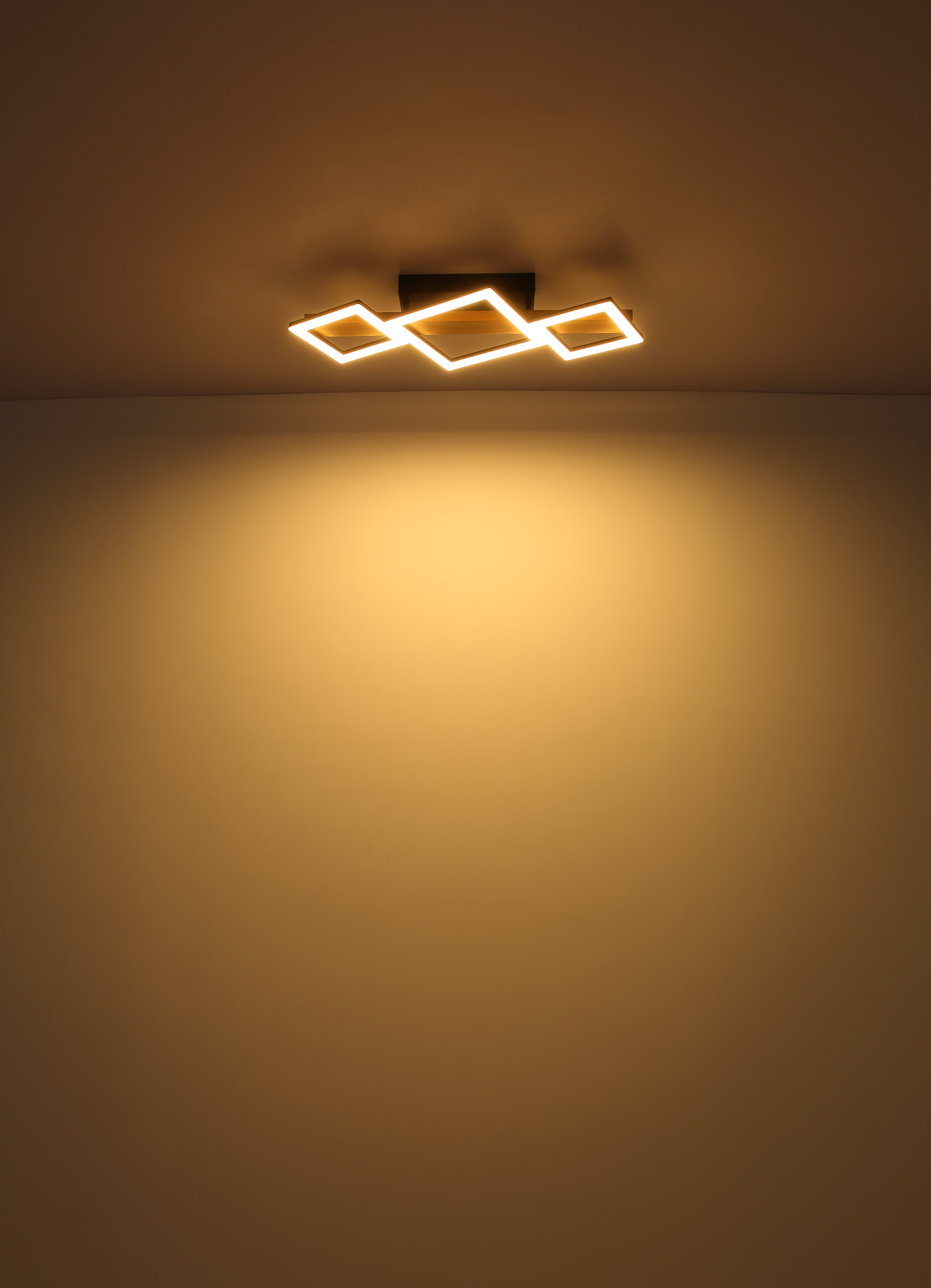 Questa lampada da soffitto della serie DUTSIN è una scelta moderna ed elegante per ogni stanza. È realizzato in metallo laccato nero opaco, effetto legno MDF scuro e plastica opalina. La lampada ha una dimensione di 660x300x100mm e ha piccoli quadrati con una dimensione di 16x16cm e un grande quadrato con 22x22cm. È dotato di un potente LED che ha una potenza luminosa di 29W e 2900lm sorgente, ma una potenza di uscita di 1560lm ad una temperatura di colore calda di 3000K.