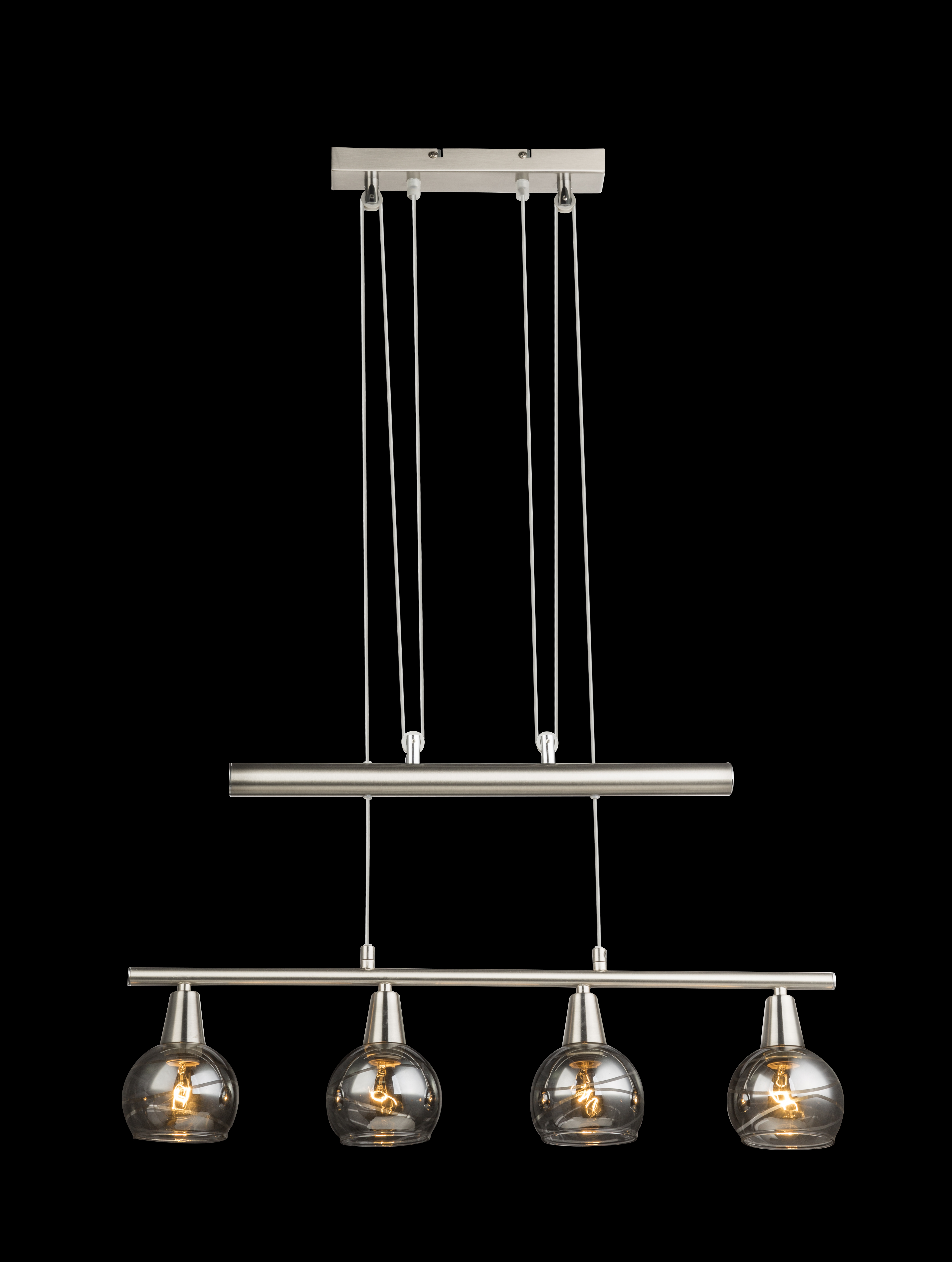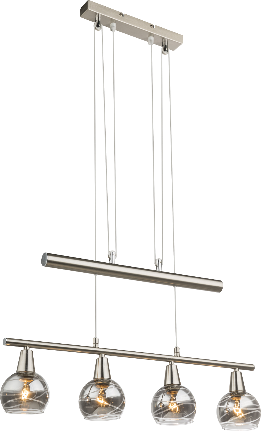 Questa grande lampada a sospensione, della serie Roman, si caratterizza per il suo design elegante, oltre che per la sua lavorazione di alta qualità. Per la realizzazione di questo prodotto è stato scelto il colore nichel opaco, che conferisce a questo prodotto un bell'aspetto. I quattro faretti fissati a un braccio regolabile in altezza, in vetro fumé trasparente, creano un accento elegante. Le lampade a LED incluse forniscono 1600 lm e 3000K di luce bianca calda. I portalampade E14 consentono di cambiare facilmente le lampadine in qualsiasi momento. Questo articolo può essere combinato molto bene anche con altri prodotti della stessa serie.