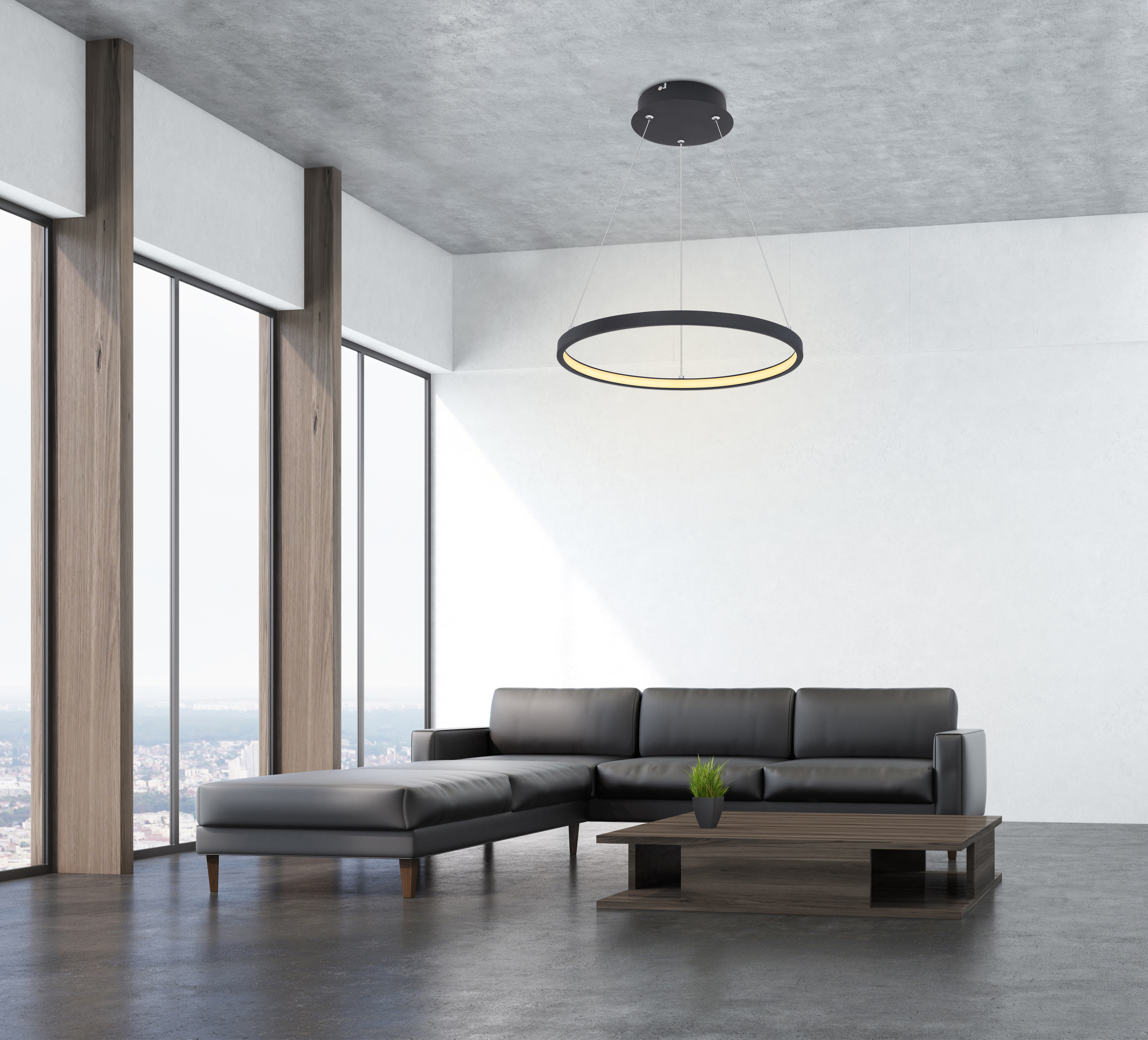 Con questa moderna sospensione a LED rotonda di nome Ralph (Ø 38,5 cm) in nero opaco, è garantito un assoluto eye-catcher. La lampadina LED da 19 watt inclusa fornisce 800 lumen di luce e fa brillare ogni casa in una luce bianca calda (3000K). La lampada da interno a LED può essere utilizzata in ogni soggiorno/sala da pranzo e corridoio. Con ulteriori modelli di questa serie, è possibile abbellire la zona giorno. Grazie al basso consumo energetico, questa lampada a LED è a risparmio energetico e quindi anche molto ecologica.