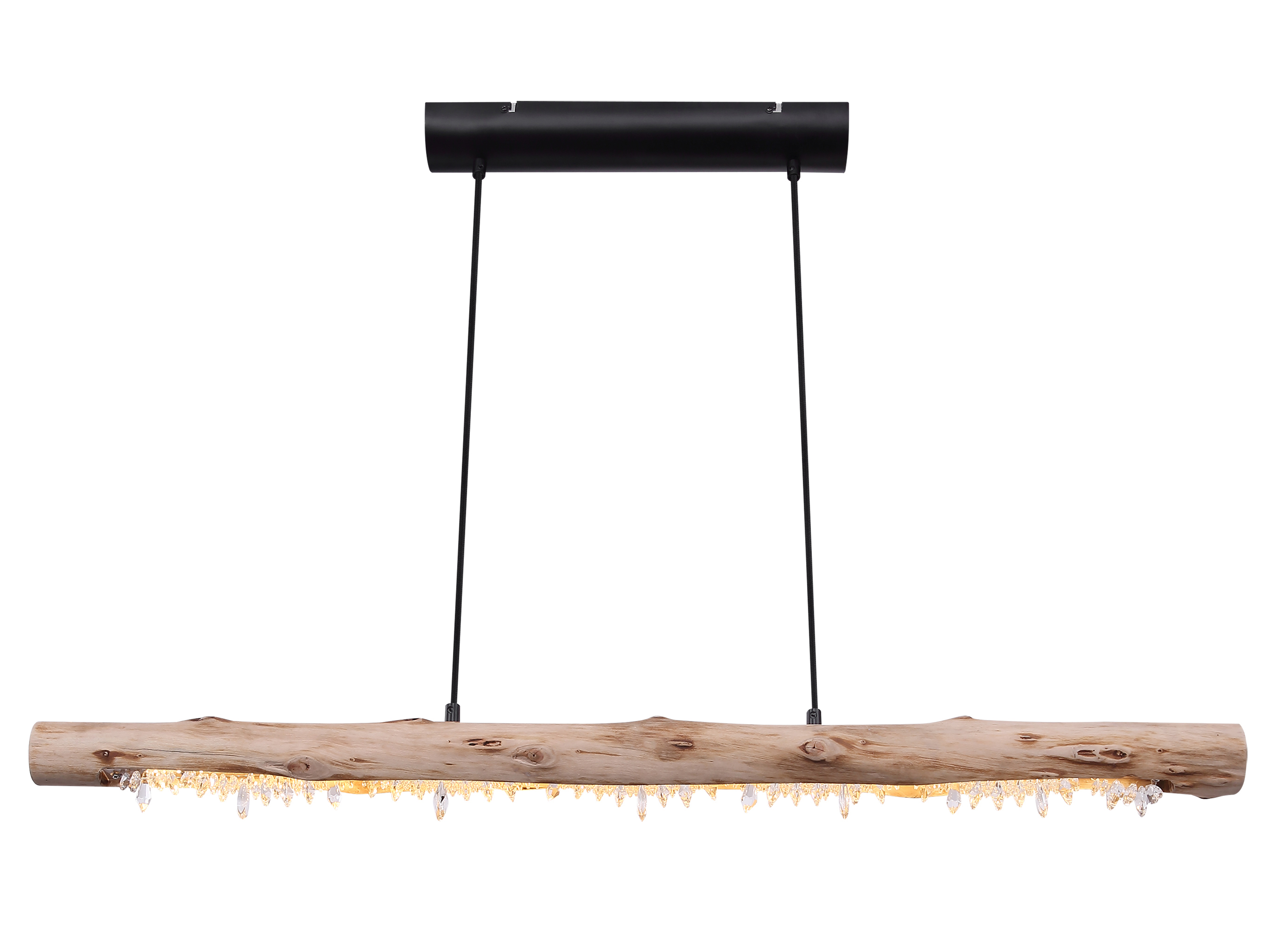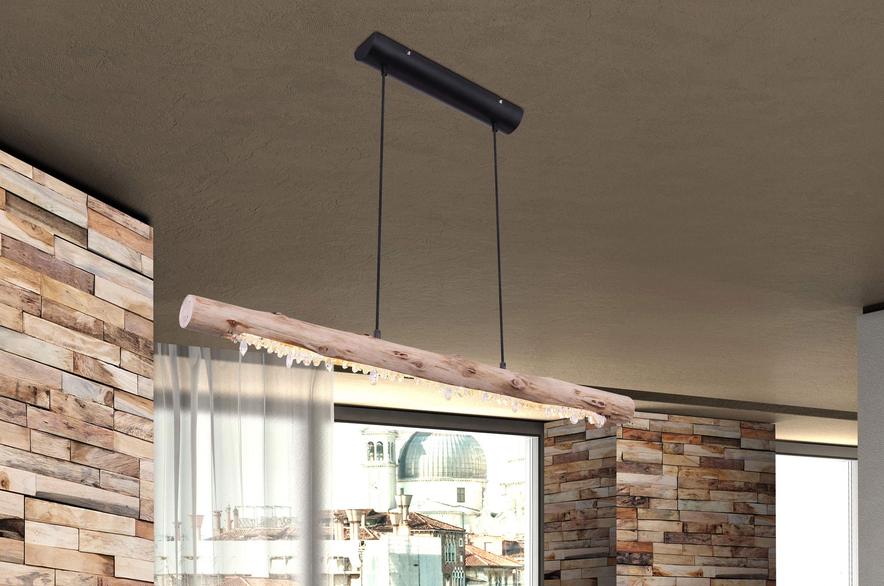 Con questa lampada a sospensione la modernità incontra la collaudata modernità. Su cavi neri appesi c'è una trave di legno naturale. I cristalli acrilici trasparenti attaccati alla trave di legno sono un elemento che attira l'attenzione in ogni stanza. Grazie alla lampadina a LED da 15W incluso, questa luce per interni non è solo un'assoluta attrazione ottica, perché fornisce fino a 980 lm di luce con un colore della luce piacevolmente caldo di 3000K. Questa luce interna è perfetta per il soggiorno e la zona pranzo.