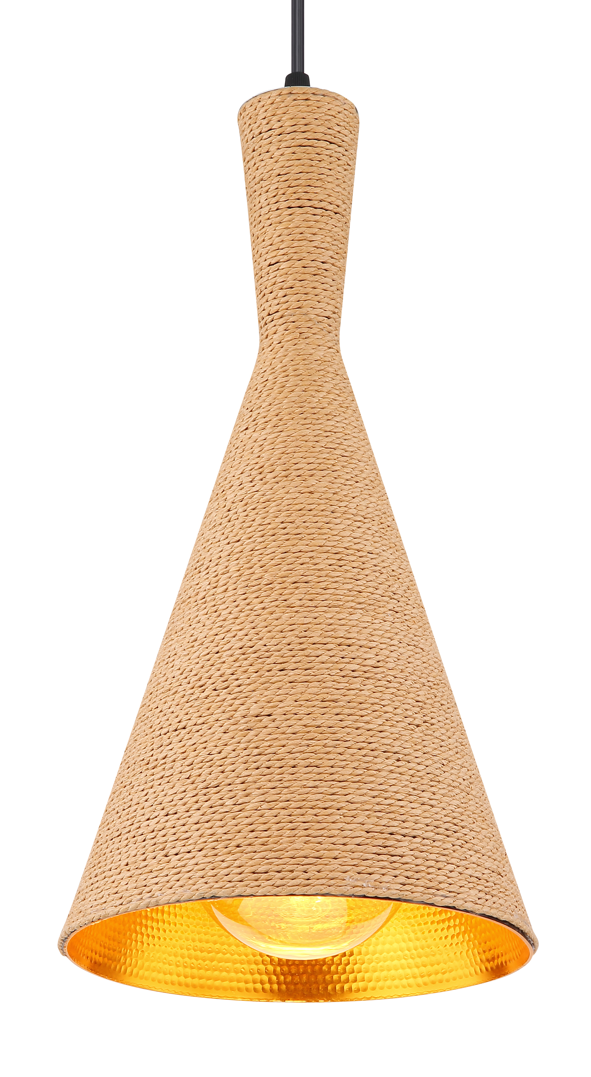 Questa sospensione della serie Ludmilla (ø 19 cm) è meravigliosamente adatta al salotto o ad ogni sala da pranzo. Consiste in un paralume in alluminio color oro a forma di imbuto, ricoperto all'esterno da un tessuto marrone. si può equipaggiarlo con lampadine E27 di propria scelta, il che permette di determinare individualmente il colore della luce e la luminosità. Inoltre, l'altezza della sospensione può essere regolata fino a 140 cm durante l'installazione. Con altri modelli della stessa serie, si può aggiornare con stile il proprio ambiente interno.