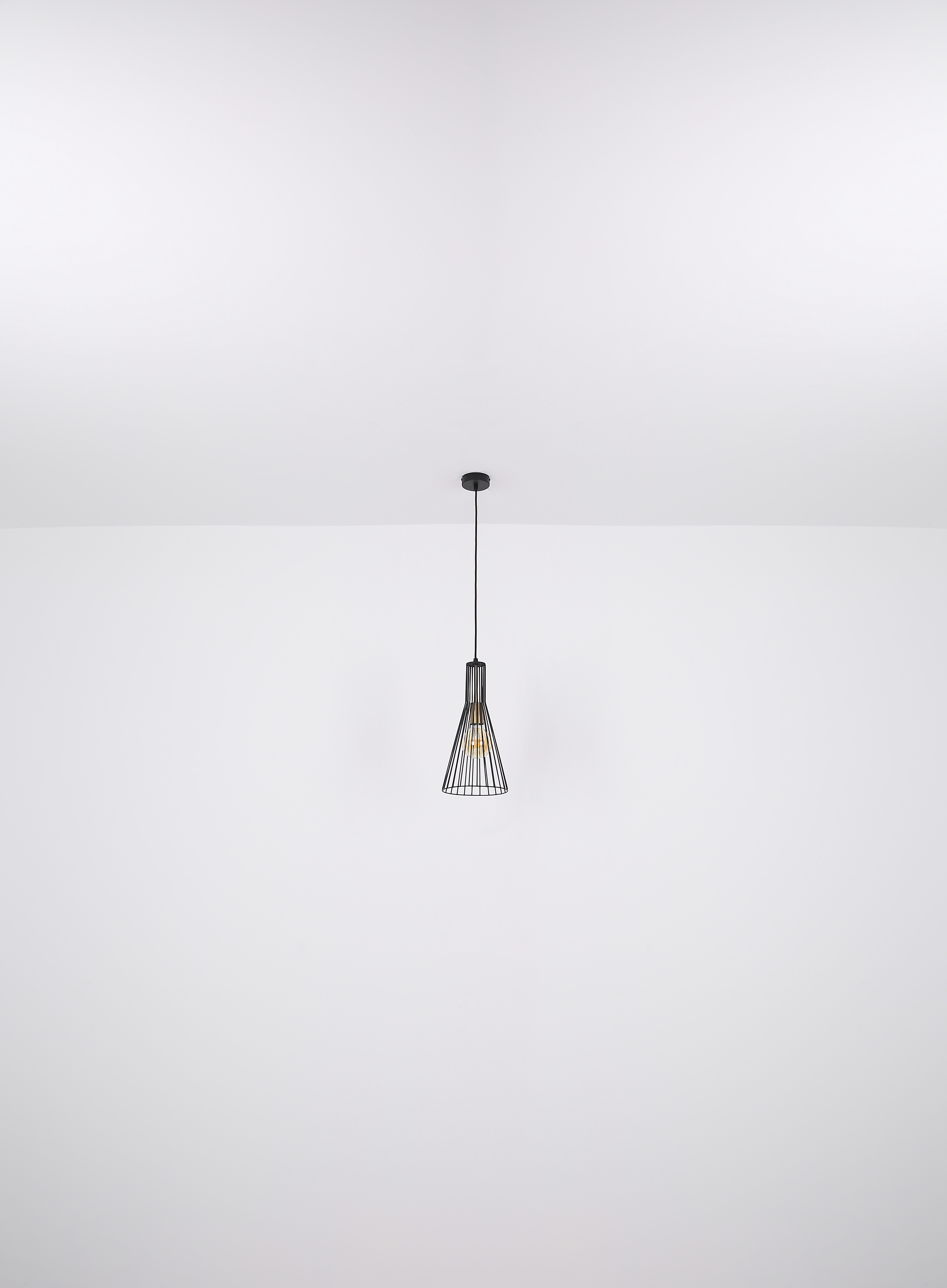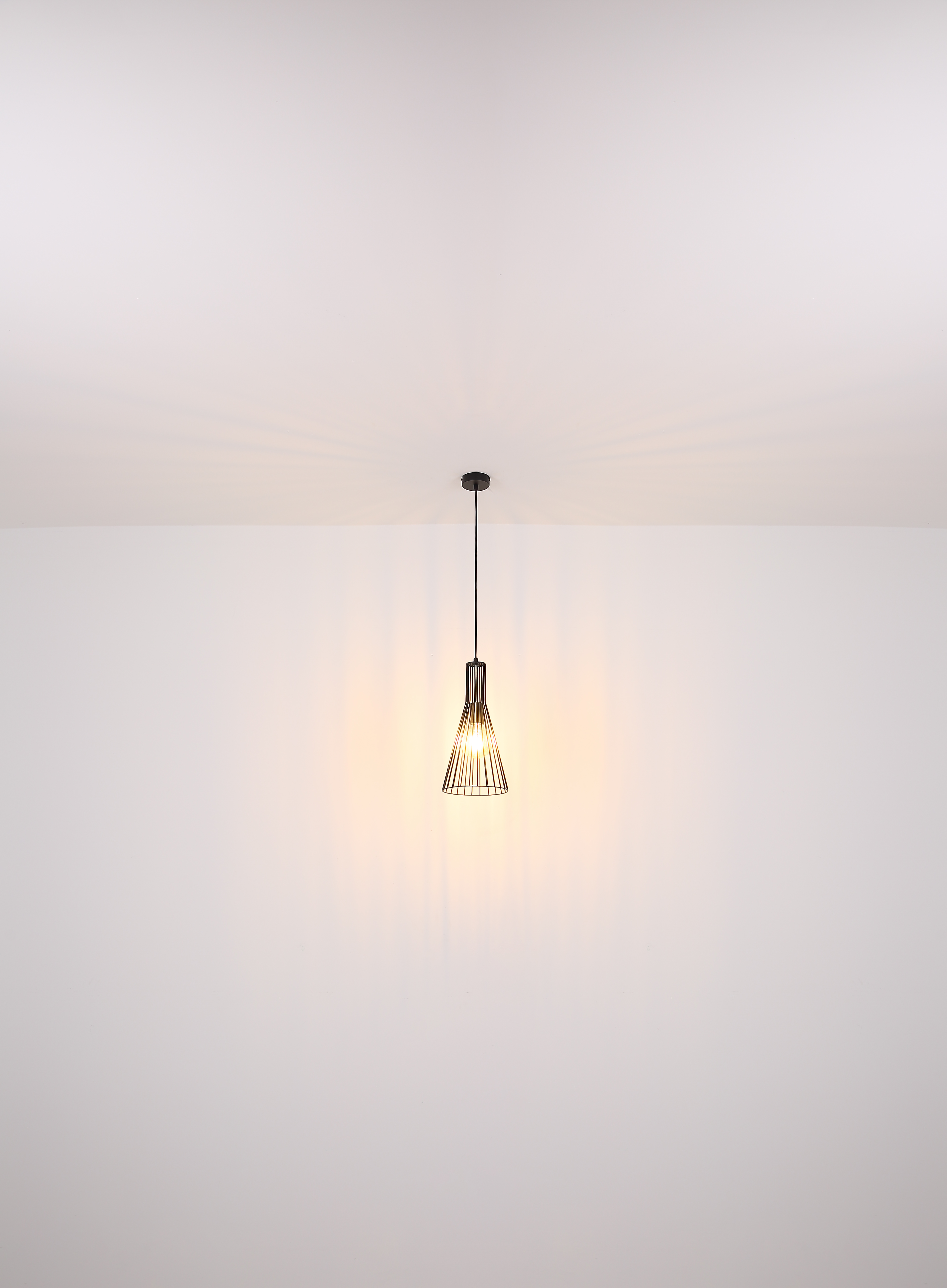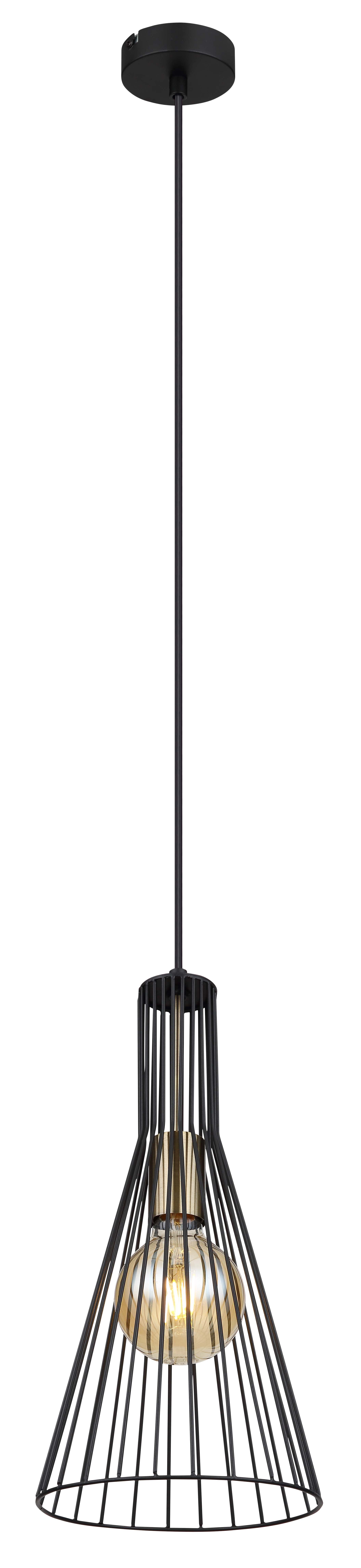 Questa grande sospensione ispira per il suo design semplice. Su un cavo lungo 1,2 m è presente una presa E27, che consente di determinare la propria lampadina, fino a una potenza massima di 40 watt. Un bel paralume in tondini di metallo (Ø20cm) conferisce alla sospensione il necessario smalto.
