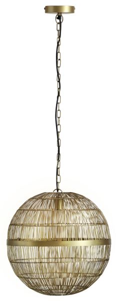 Questa sospensione (ø 40 cm) è una splendida aggiunta ai vostri interni. È costituita da uno schermo rotondo di metallo in ottone vecchio, che pende a 1,2 m dal soffitto su un attacco rotondo. È possibile dotarlo di una lampadina E27 a scelta, che consente di determinare individualmente il colore e la luminosità della luce. Per la longevità e il risparmio energetico, si consigliano le lampadine a LED.
